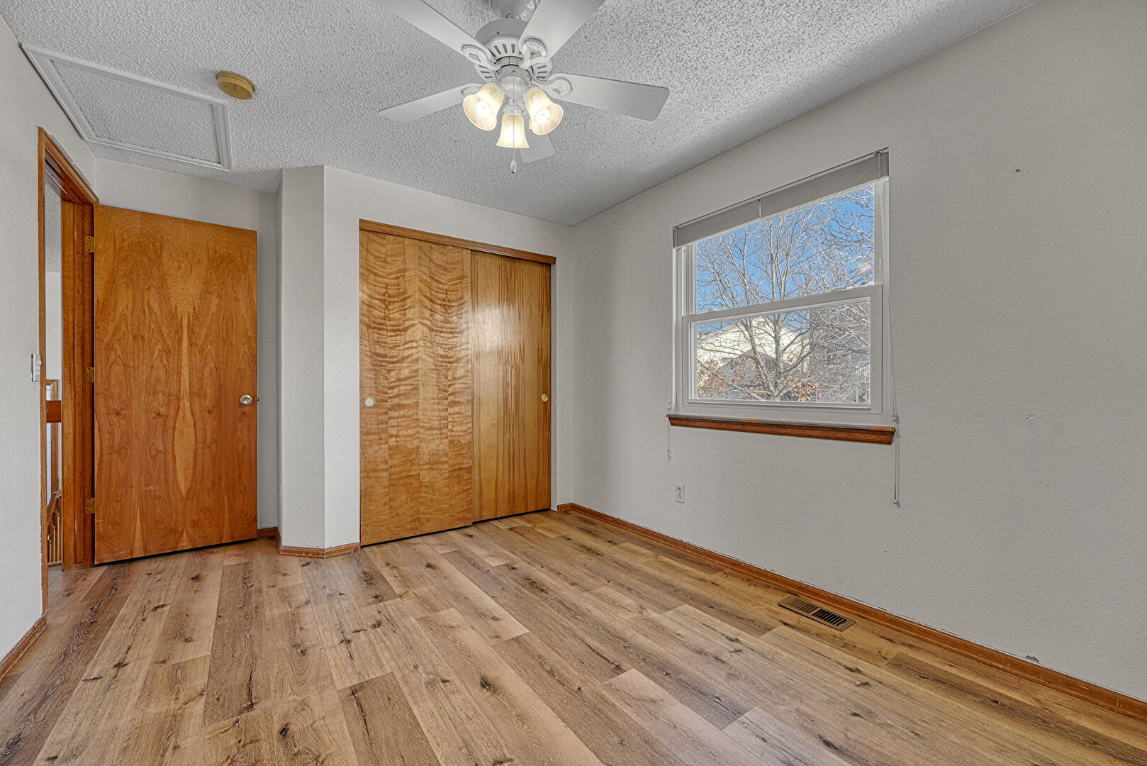 Baseboards Wall, Ceiling Fan, Closet, Drywall, Natural Light, Scuttle, Smoke Carbon Monoxide Detector, Textured Ceiling, Vent, Wood Finish Floor, Baseboards Wall, Ceiling Fan, Natural Light, Wood Finish Floor