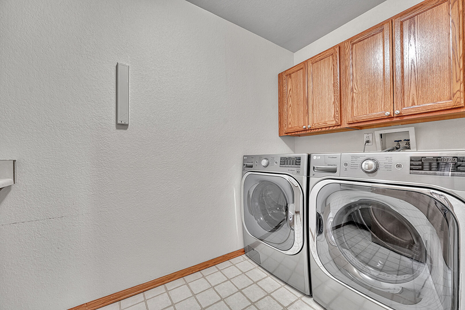 Baseboards Wall, Laundry, Textured Wall, Tile Floor, Washer Hookup