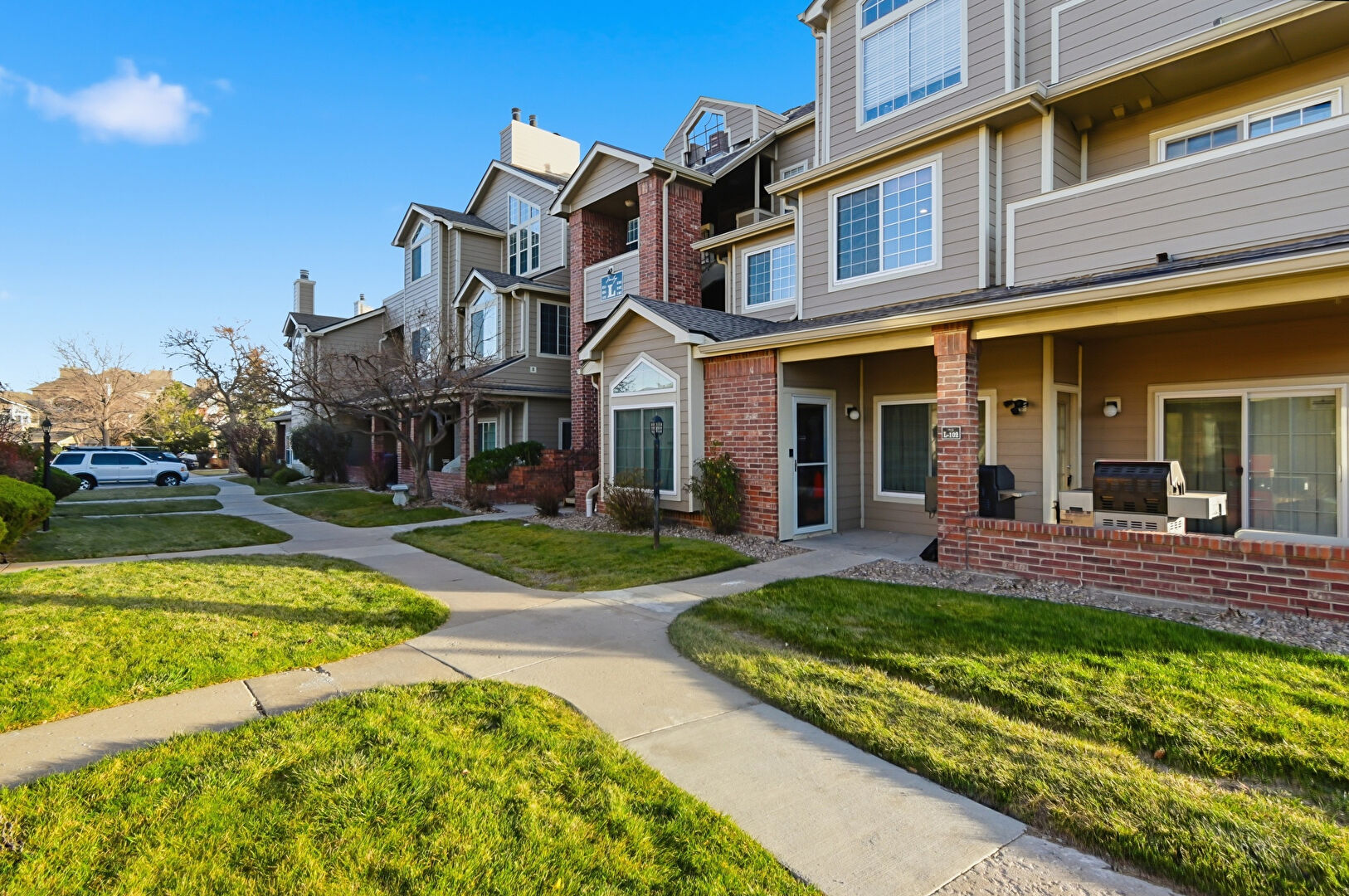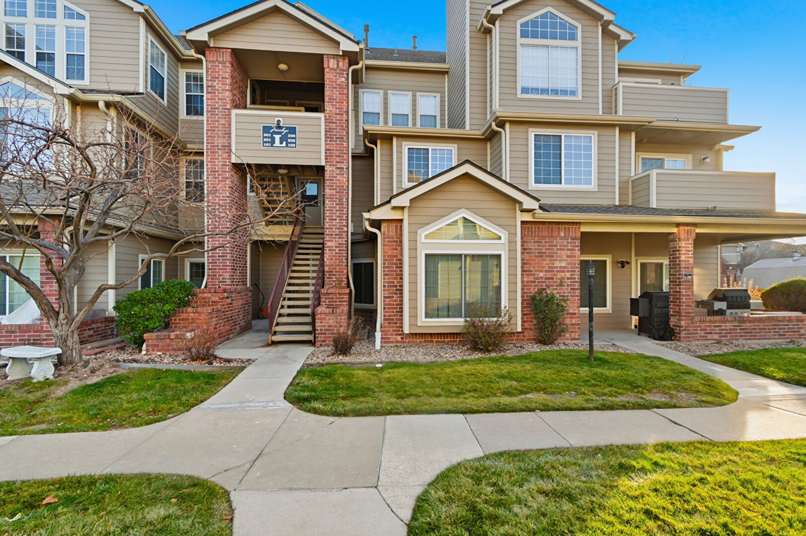 Balcony, Brick Siding, Chimney, Downspout, Gutters, Horizontal Siding, Lawn, Parking Lot, Porch, Residential View, Shingle Roof, Stairs, Brick Siding, Chimney, Horizontal Siding, Lawn, Porch