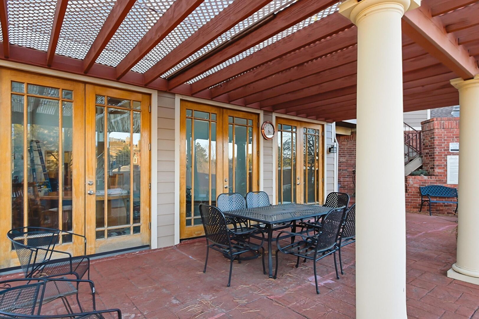 French Doors, Outdoor Dining Area, Patio, Stairs, Pergola