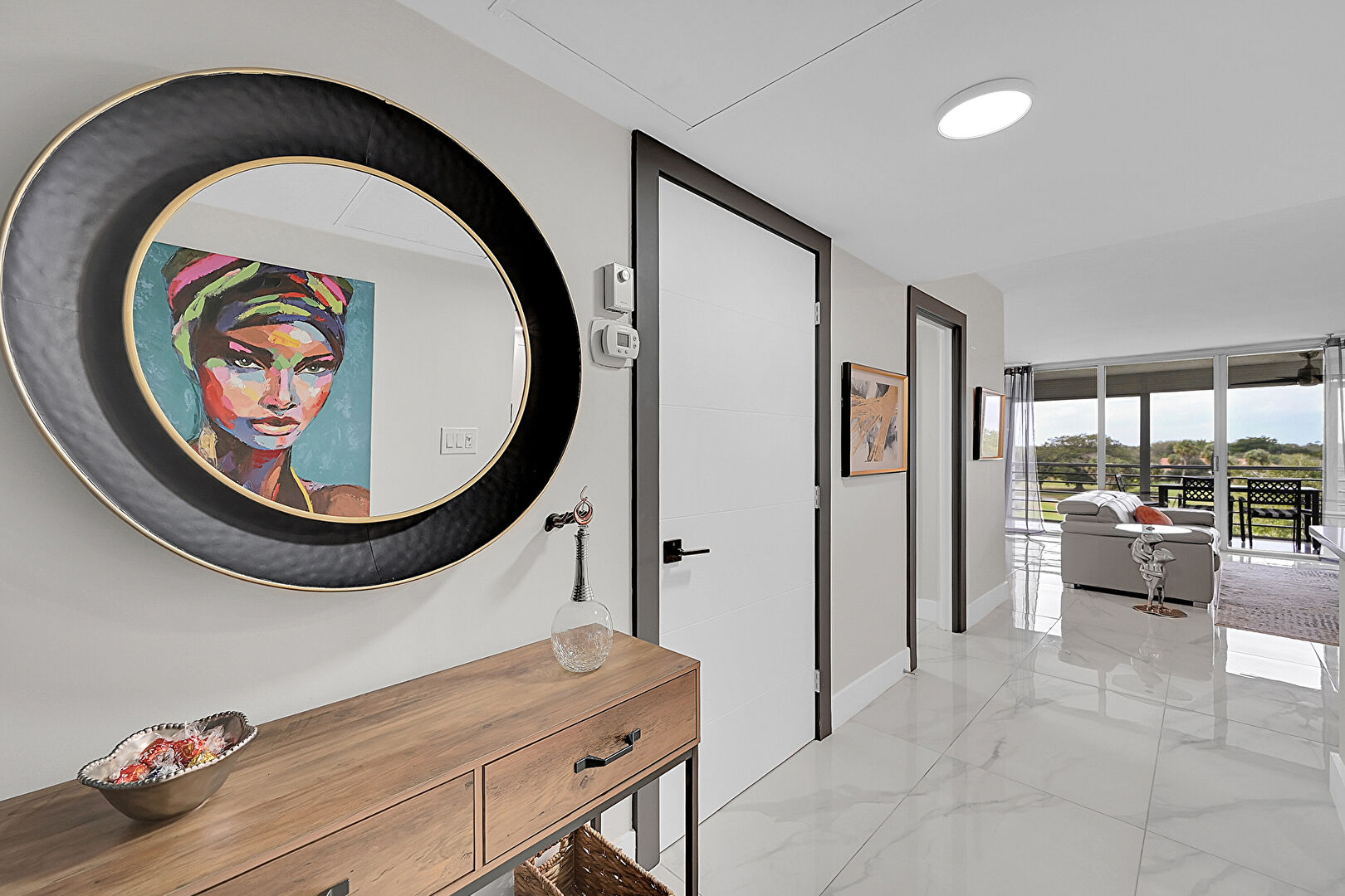 Baseboards Wall, Drywall, Elevator, French Doors, Inlaid Floor, Textured Ceiling, Tile Floor, Vent, Natural Light, Textured Ceiling