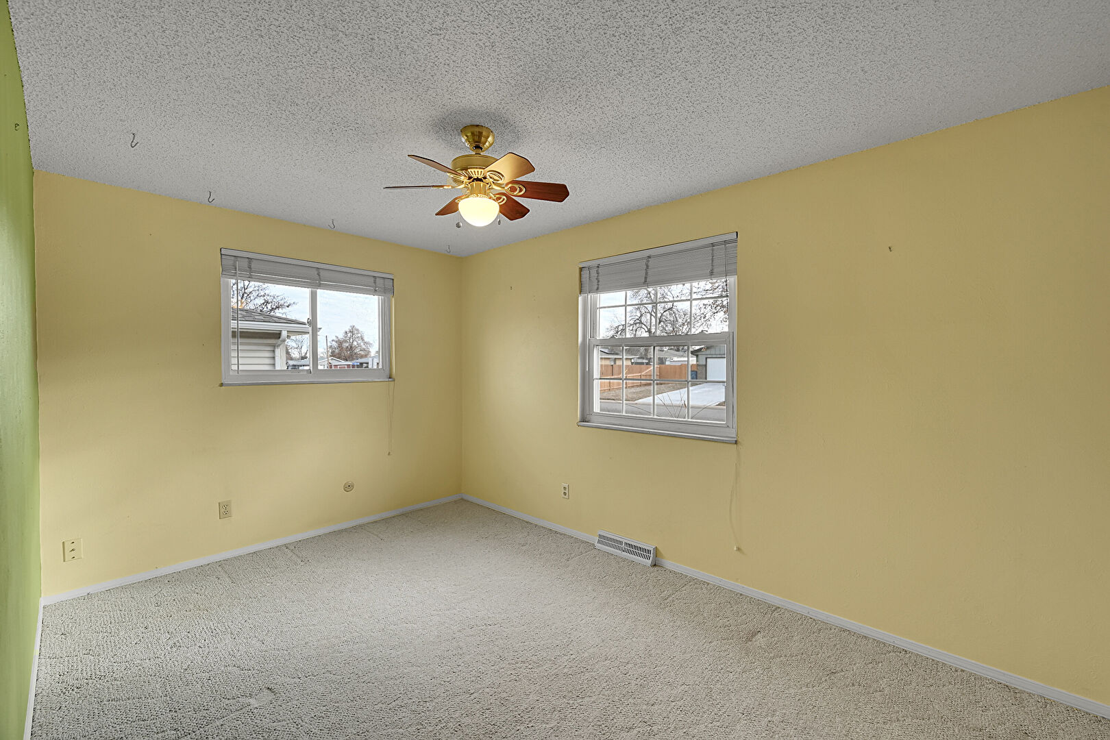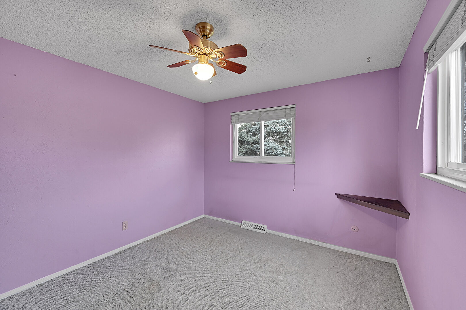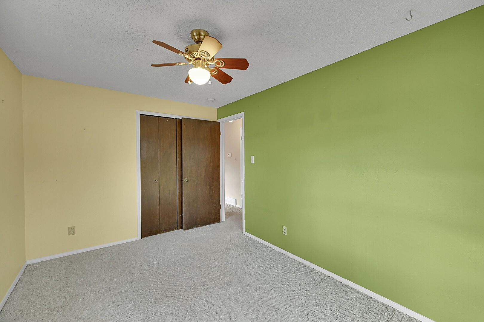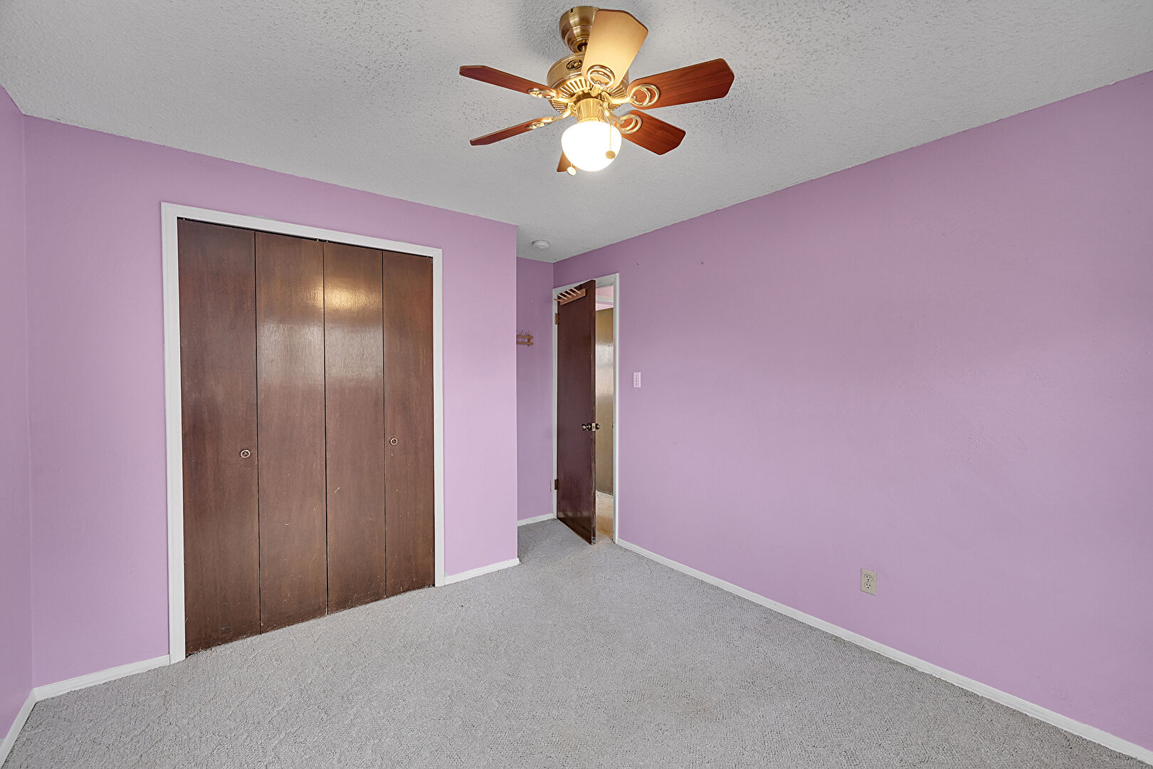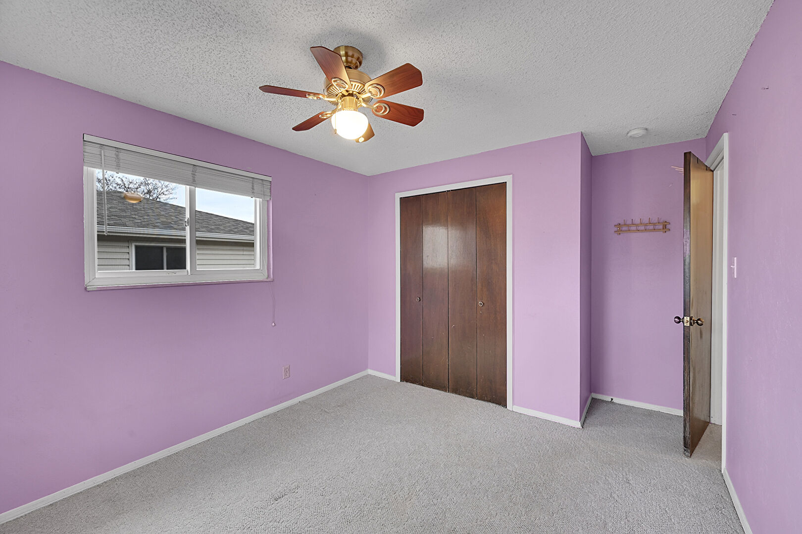 Baseboards Wall, Carpet, Ceiling Fan, Closet, Drywall, Natural Light, Textured Ceiling, Vent, Carpet, Drywall, Vent