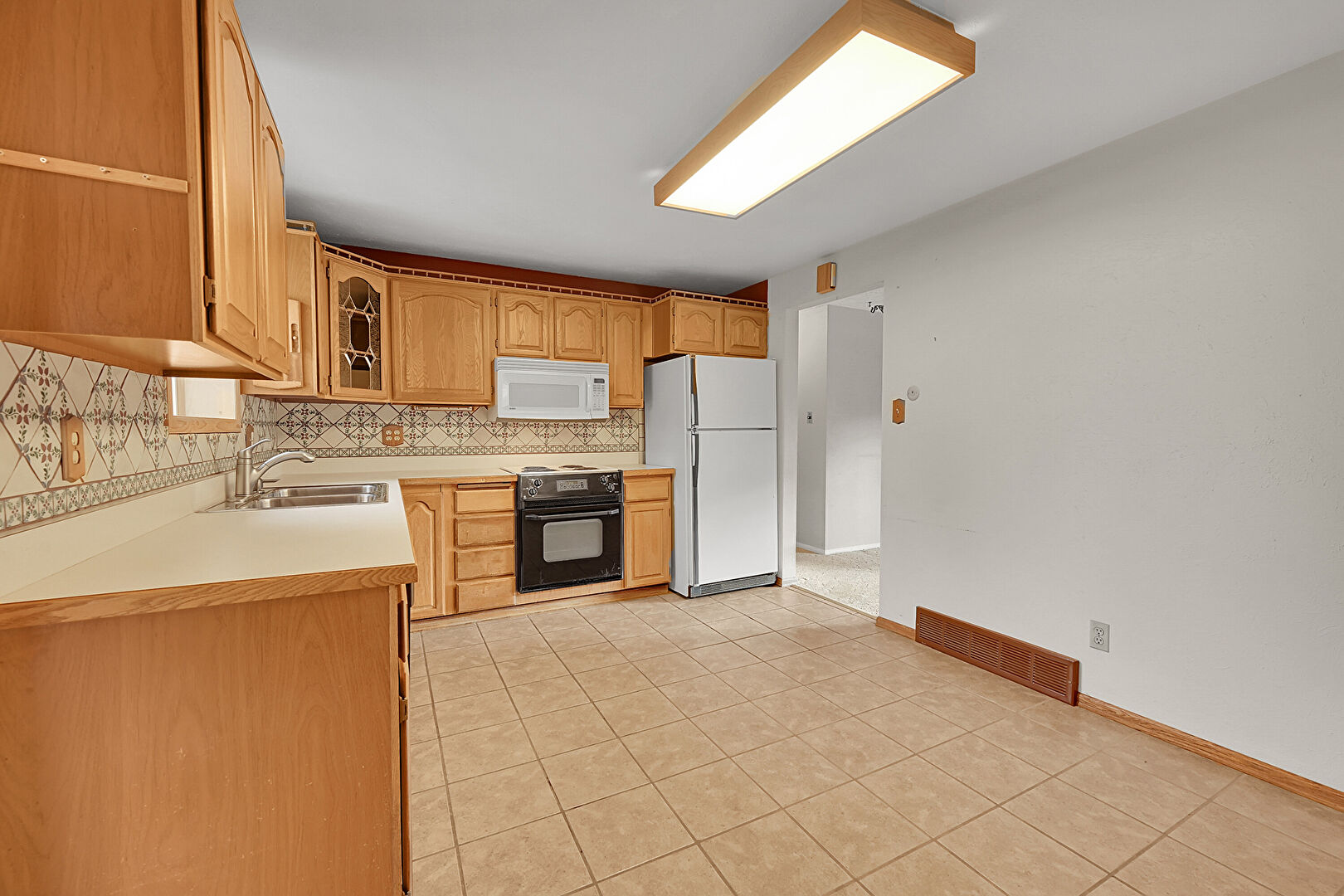 Arched Cabinets, Baseboards Wall, Carpet, Crown Molding Cabinets, Drywall, Glass Insert Cabinets, L Shaped Kitchen, Natural Light, Raised Cabinets, Tile Floor, Vent, Visible Hinge Cabinets, Wainscot Wall, Glass Insert Cabinets, Tile Floor, Vent