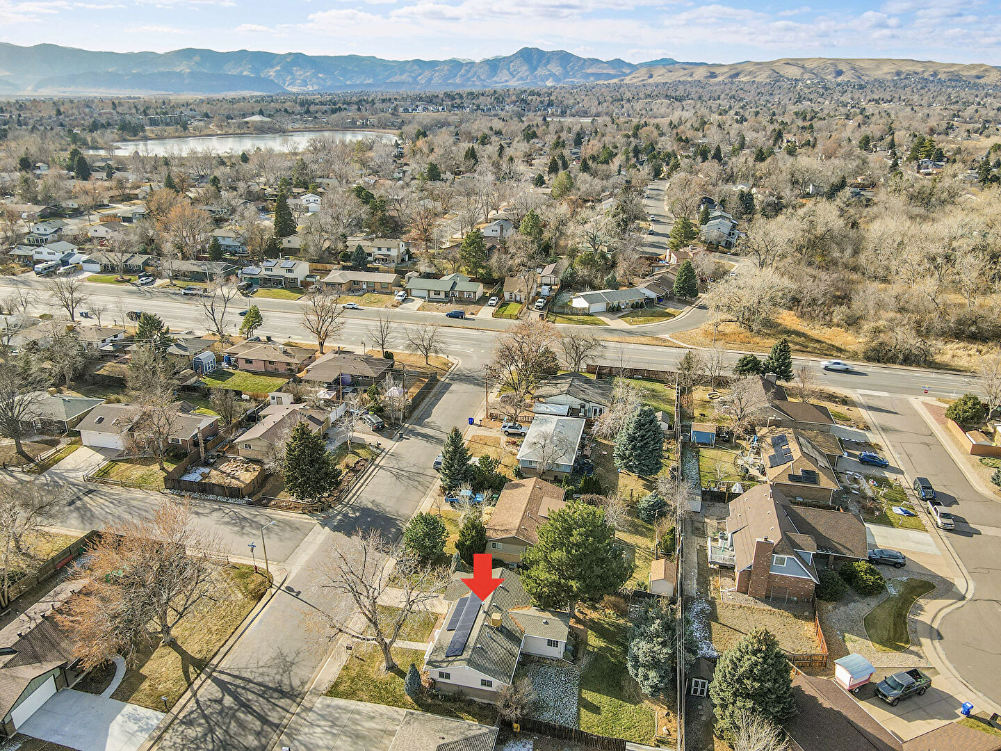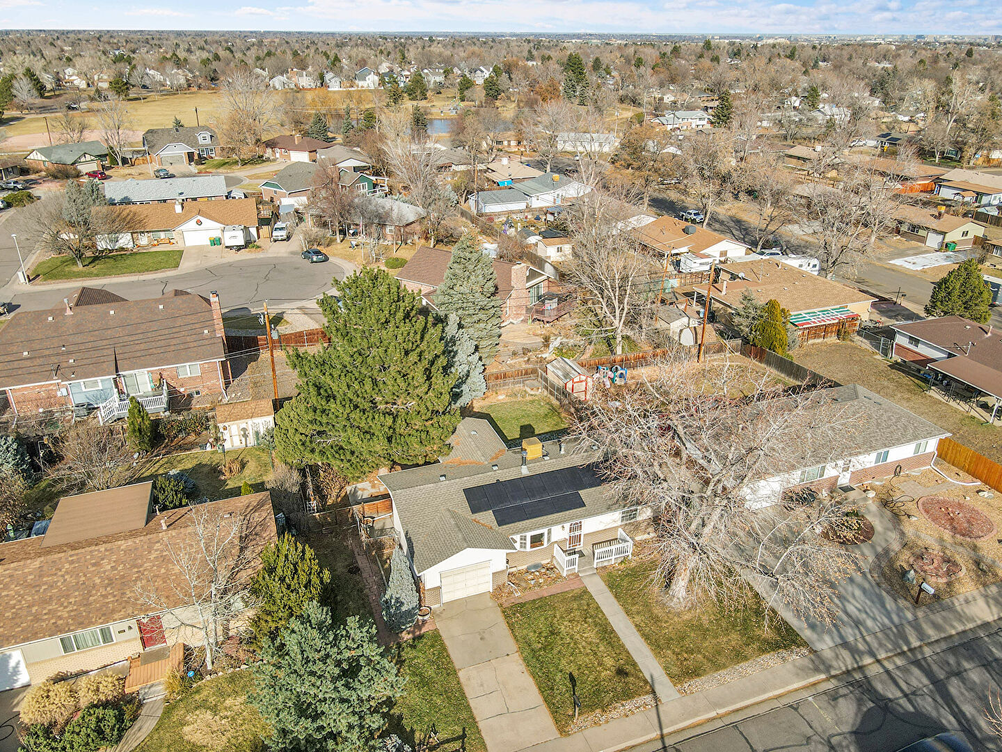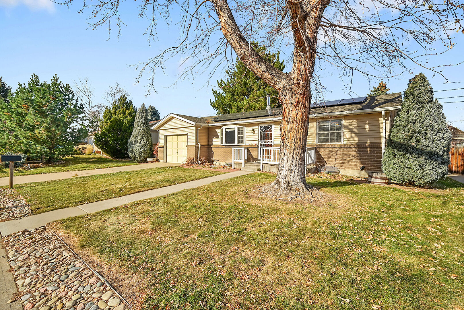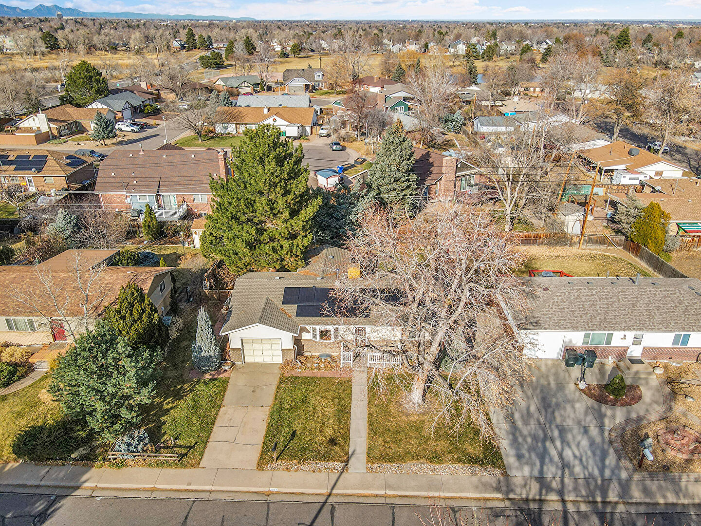 Brick Siding, Chimney, Concrete Foundation, Downspout, Driveway, Fence, Gutters, Lawn, Solar Panels, Stoop, Horizontal Siding