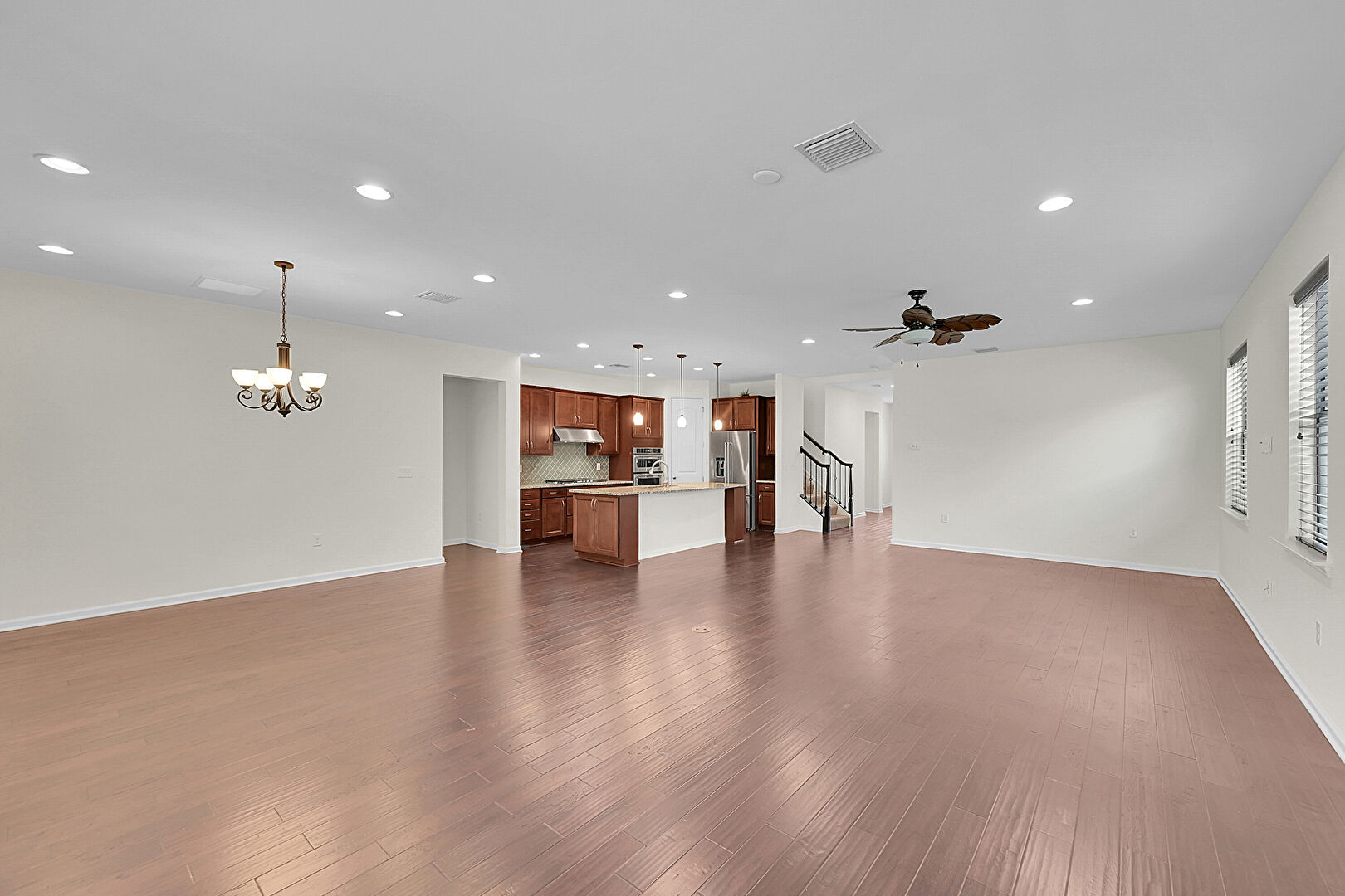 Baseboards Wall, Drywall, Natural Light, Notable Chandelier, Recessed Lighting, Vent, Wood Finish Floor