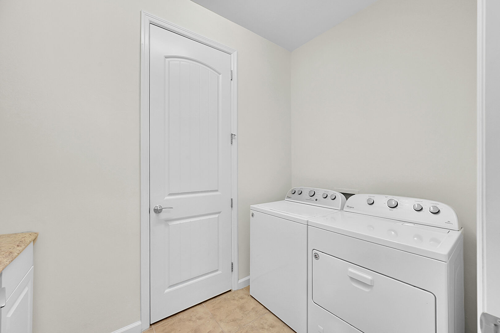 Baseboards Wall, Drywall, Laundry, Washer Hookup, Tile Floor