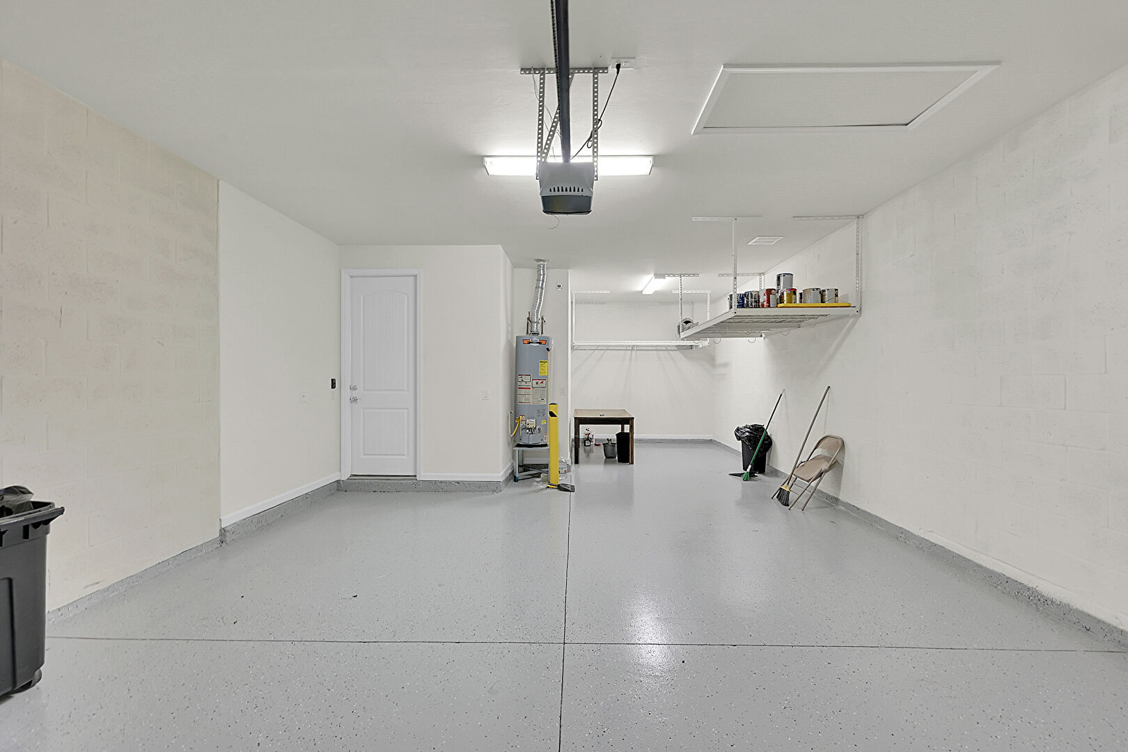 Concrete Block Wall, Drywall, Garage Door Opener, Water Heater, Garage