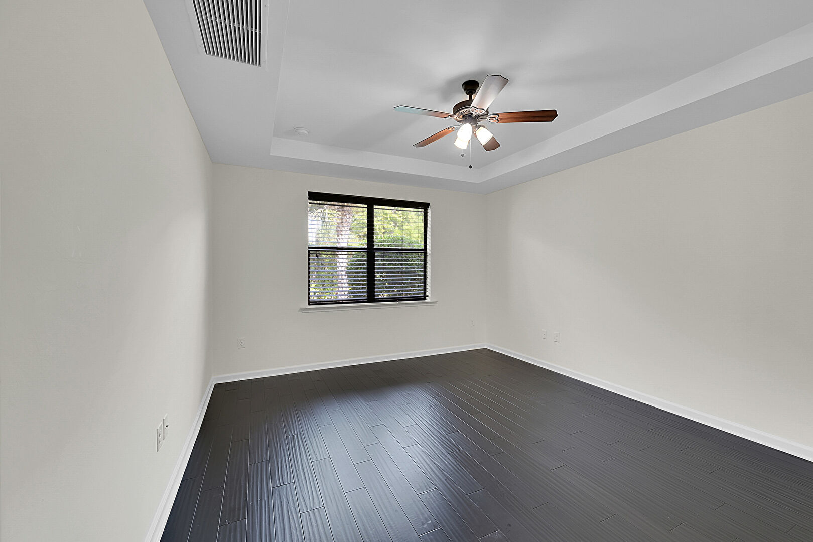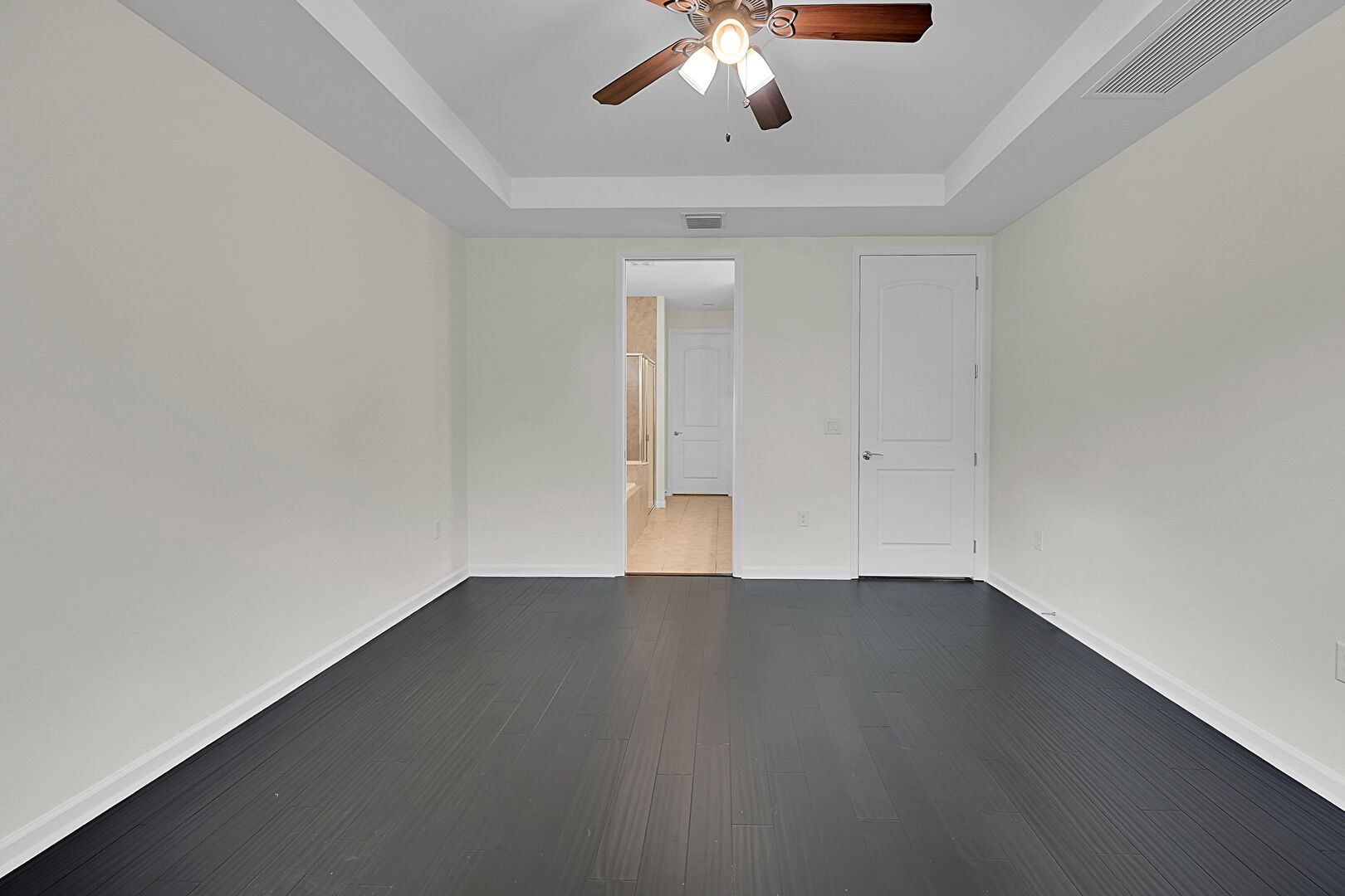 Baseboards Wall, Ceiling Fan, Drywall, Ensuite Bathroom, Natural Light, Tray Ceiling, Vent, Wood Finish Floor, Baseboards Wall, Ceiling Fan, Drywall