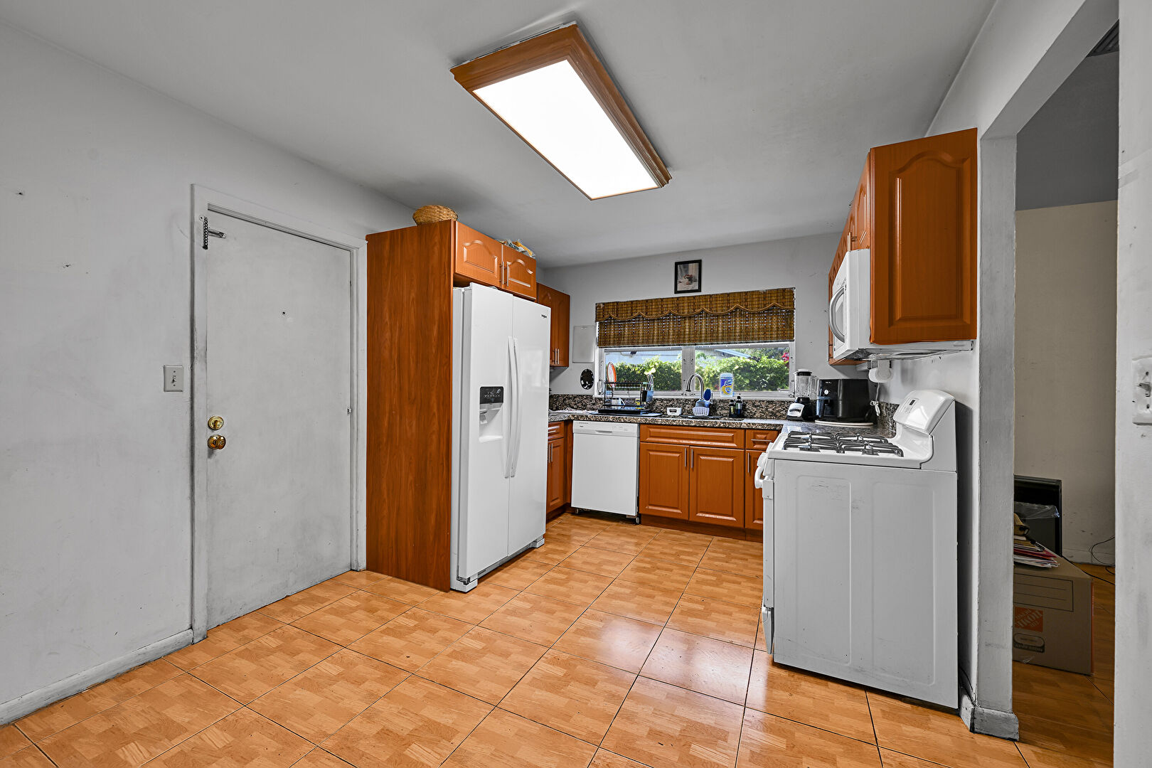 Arched Cabinets, Drywall, Natural Light, Raised Cabinets, Stone Tile Countertops, Tile Floor, U Shaped Kitchen, Medium Brown Cabinets