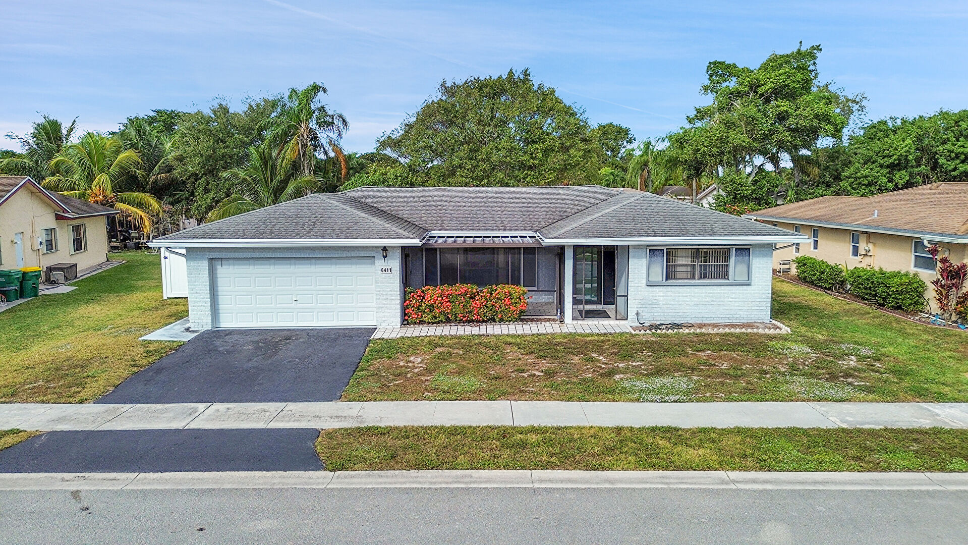 Brick Siding, Driveway, Lawn, Shingle Roof, Woods View, Lawn, Sunroom