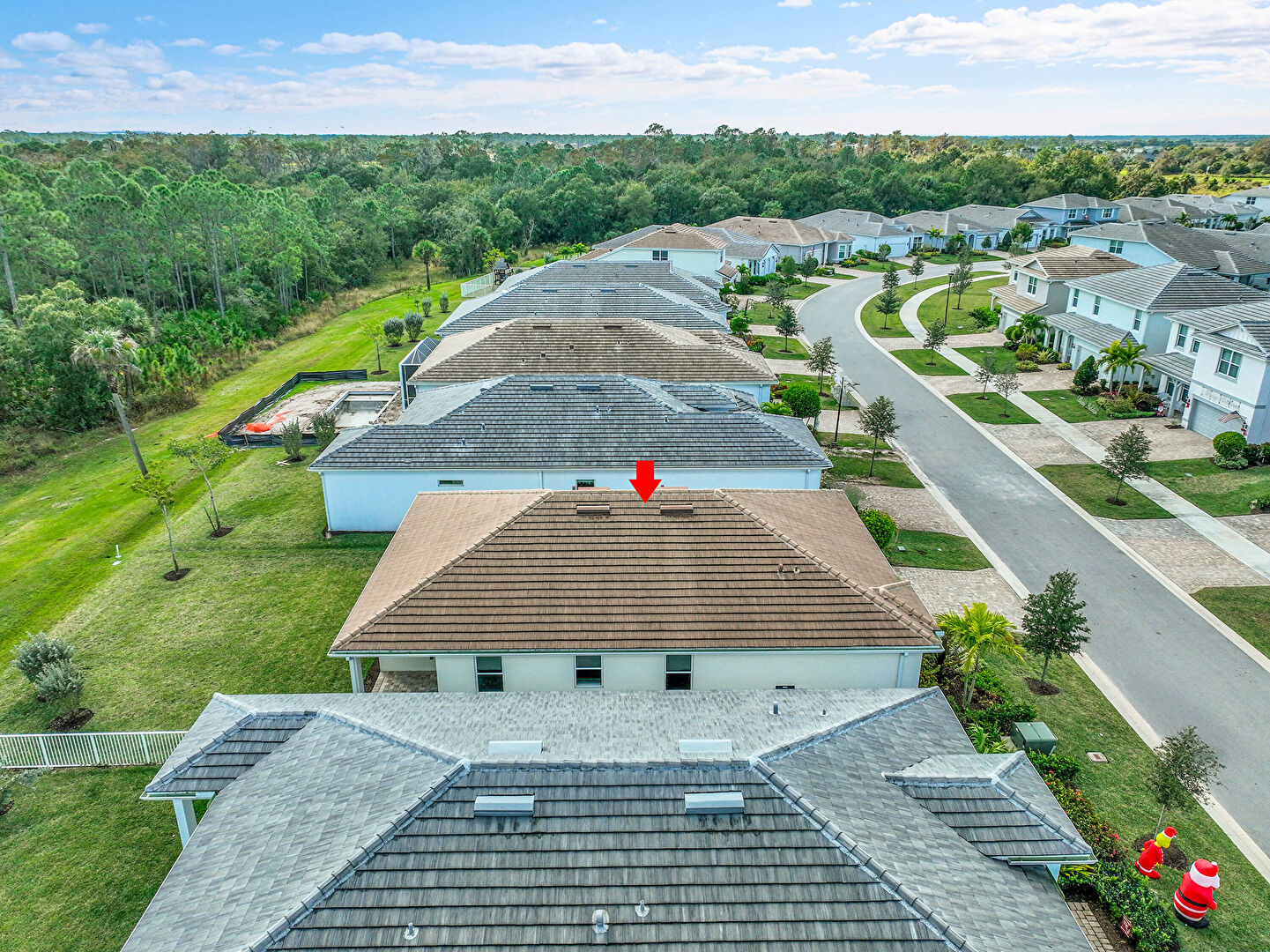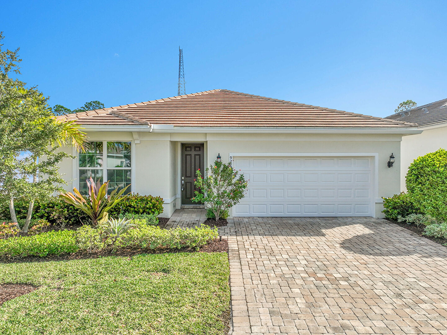Downspout, Driveway, Gutters, Lawn, Pad Mount Transformer, Stucco Siding, Tile Roof, Driveway, Stucco Siding