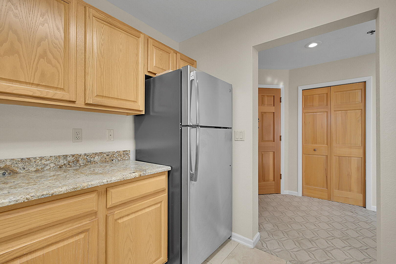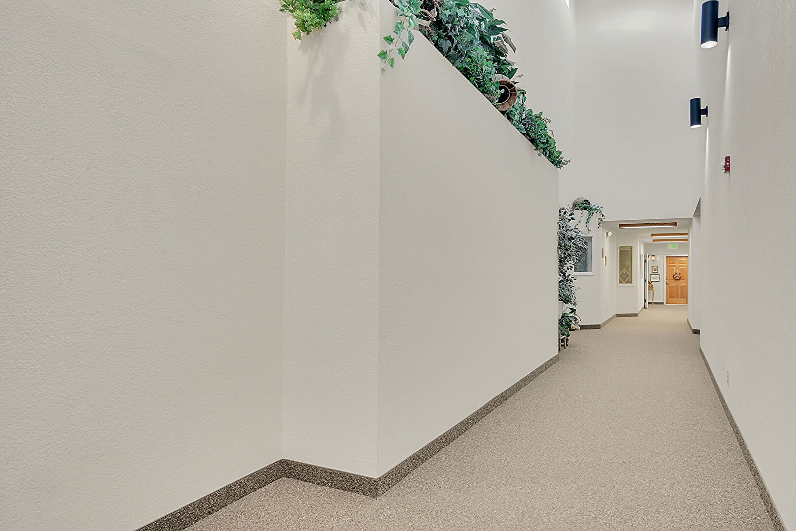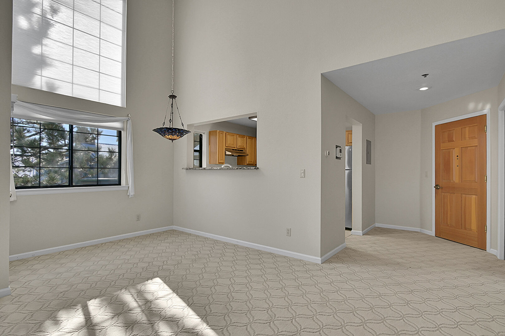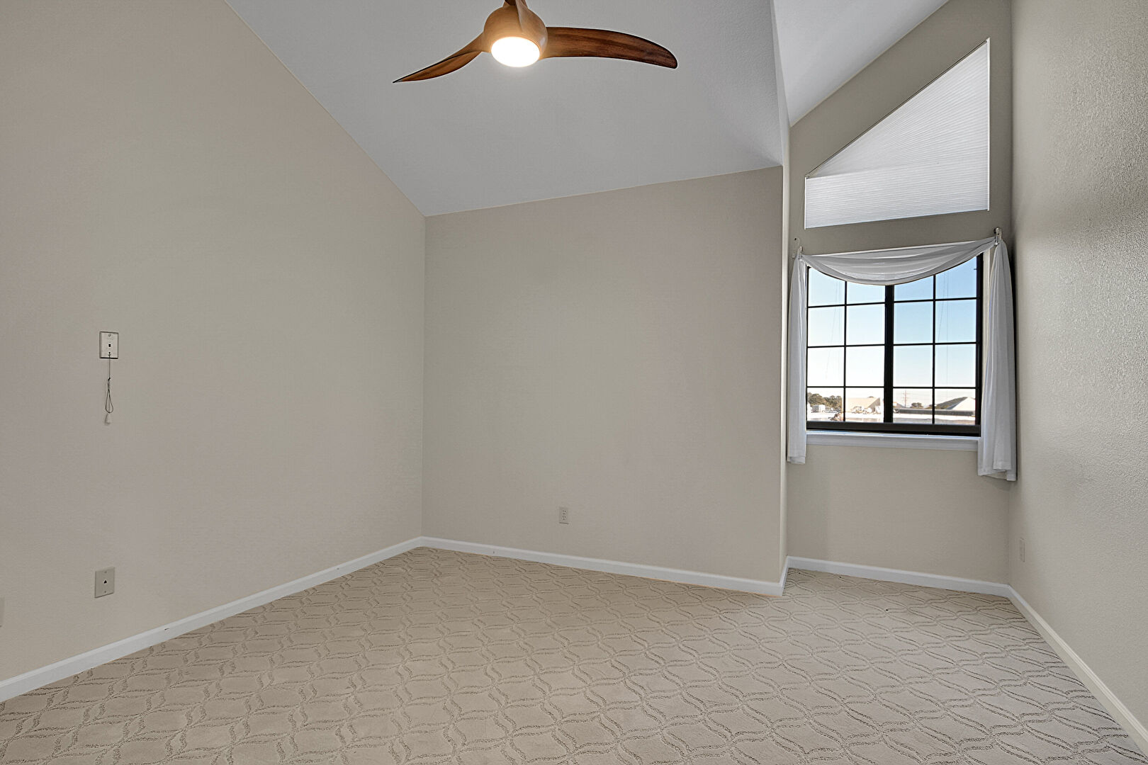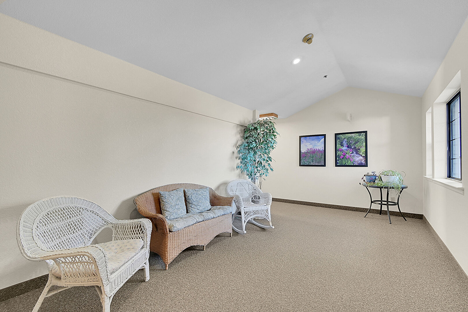 Baseboards Wall, Carpet, Cathedral Ceiling, Natural Light, Recessed Lighting, Vaulted Ceiling, Drywall