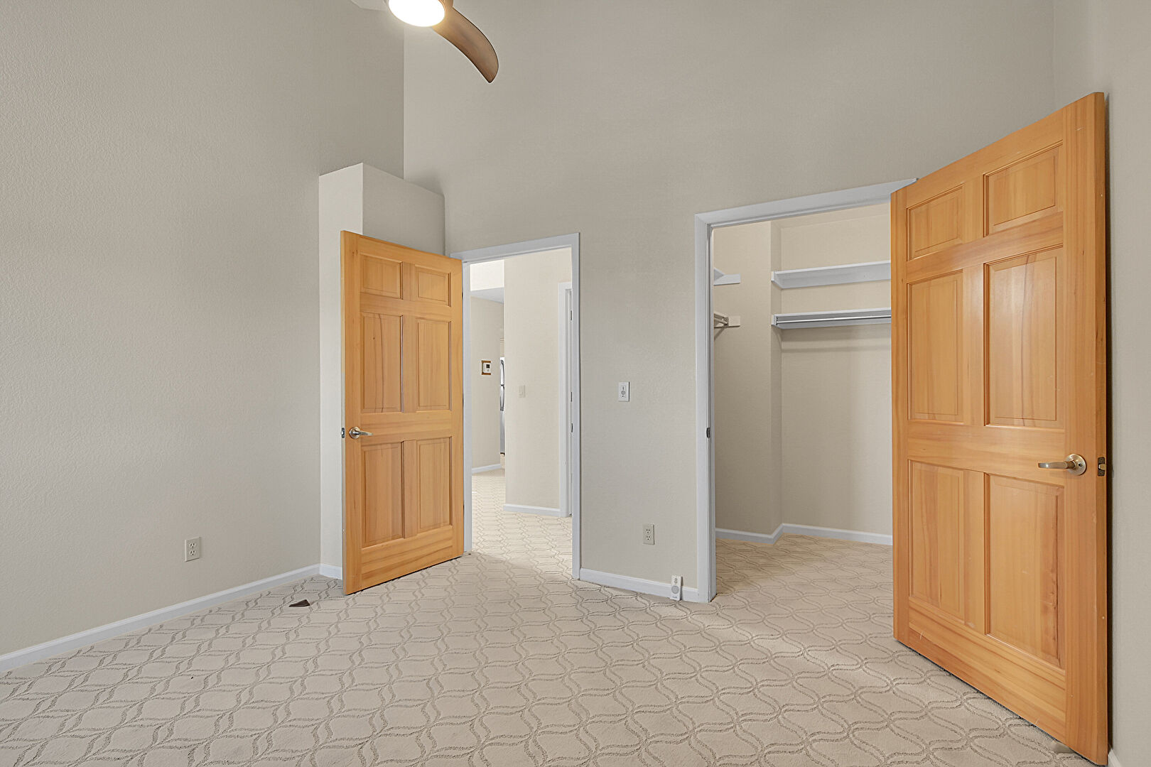 Baseboards Wall, Carpet, Ceiling Fan, Drywall, High Ceiling, Vaulted Ceiling, Walk In Closet, Carpet, Natural Light