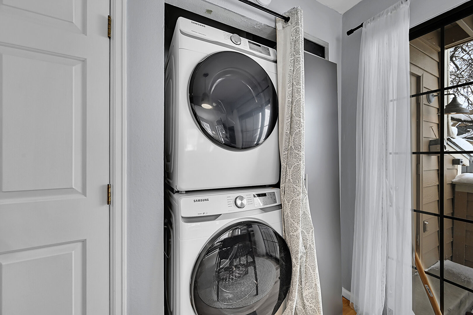 Laundry, Wood Finish Floor, Drywall