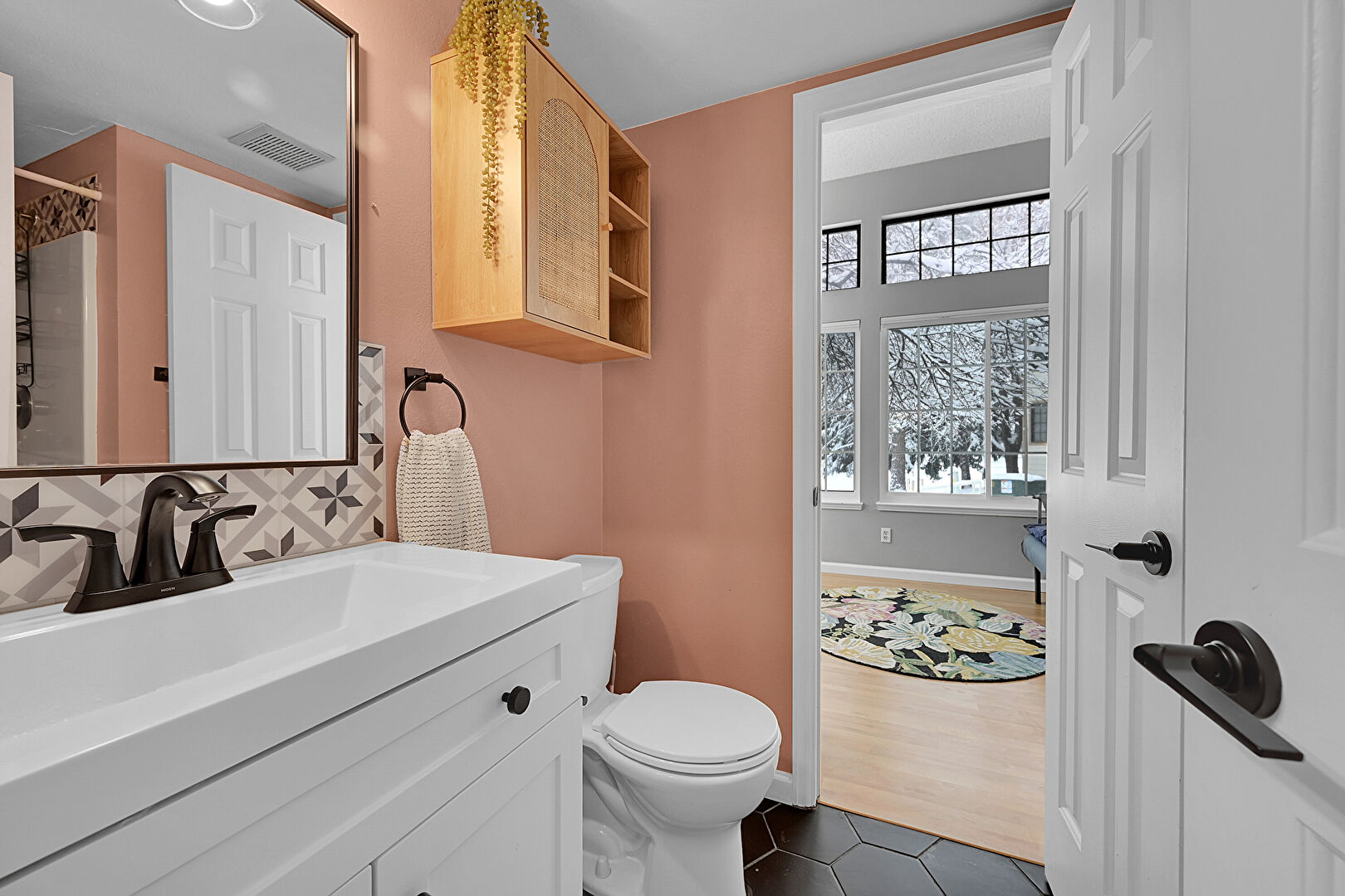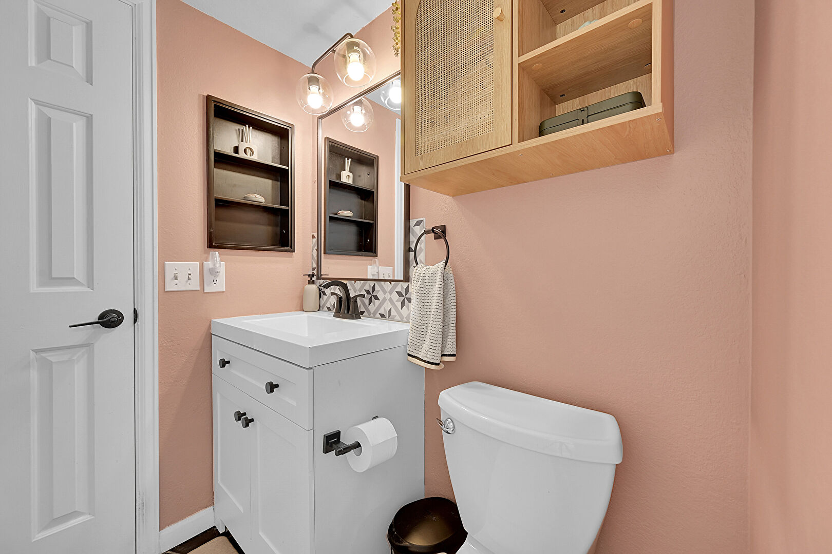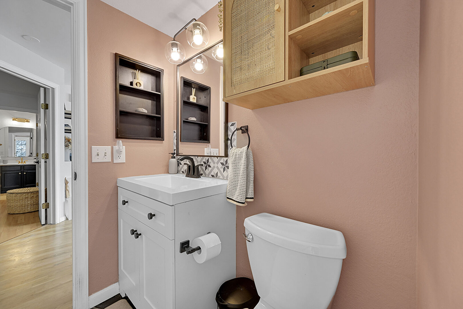 Baseboards Wall, Drywall, Full Bathroom, Half Bathroom, Natural Light, Vanity, Vent, Half Bathroom, Tile Floor, Wood Finish Floor