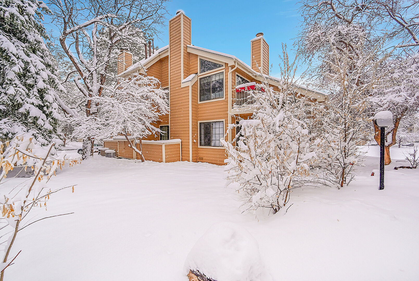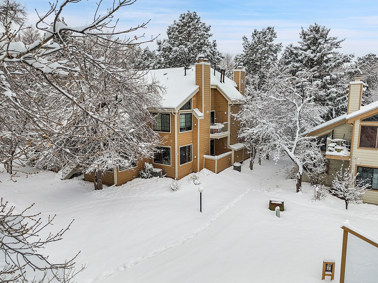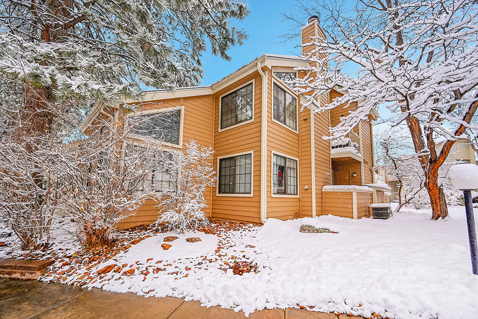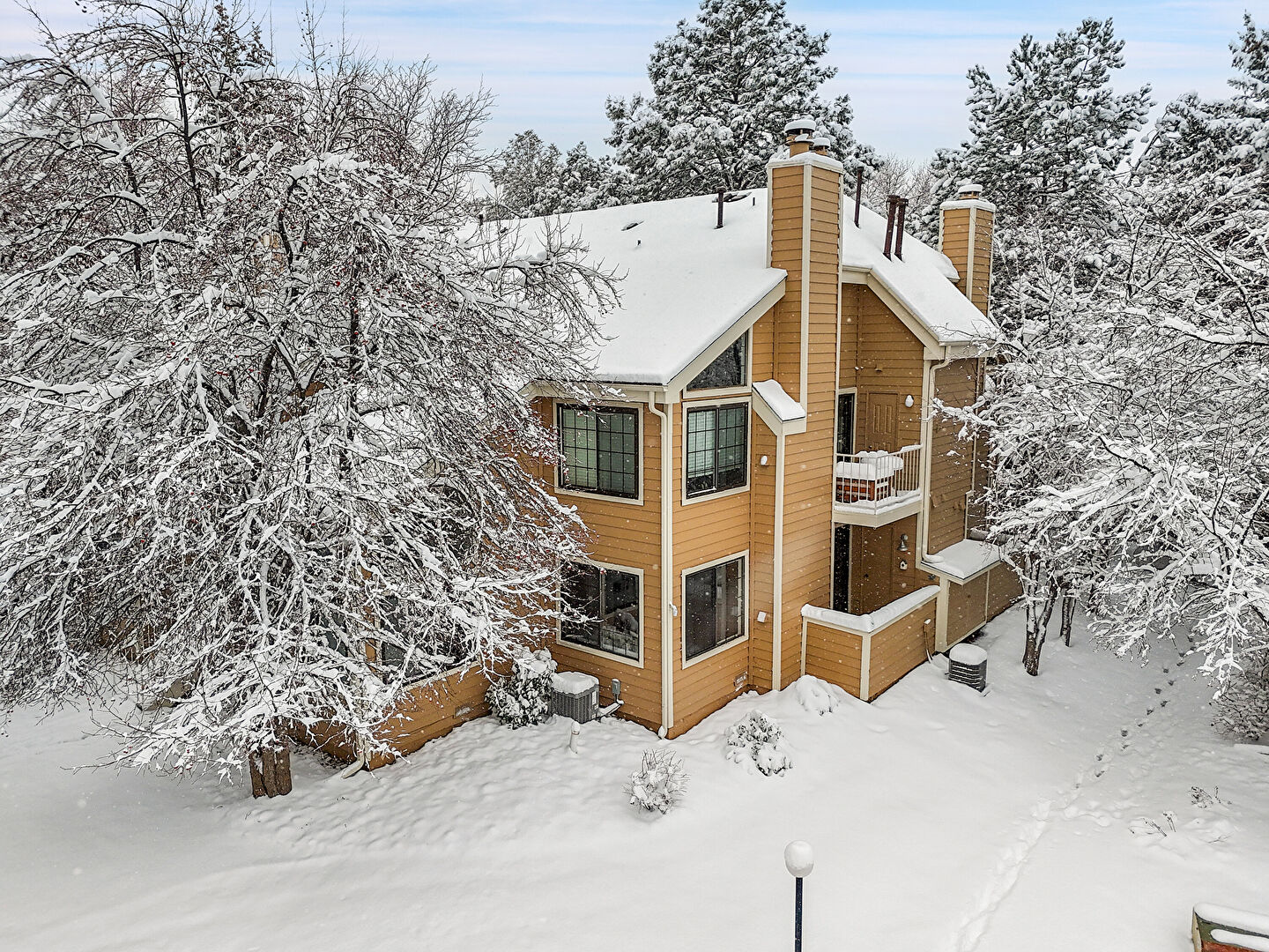 Balcony, Chimney, Gutters, Horizontal Siding, Stairs, Balcony, Downspout, Stairs
