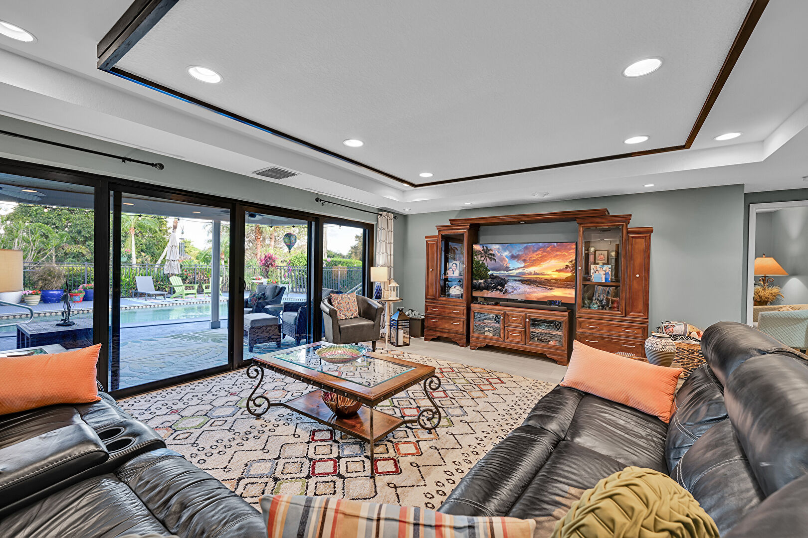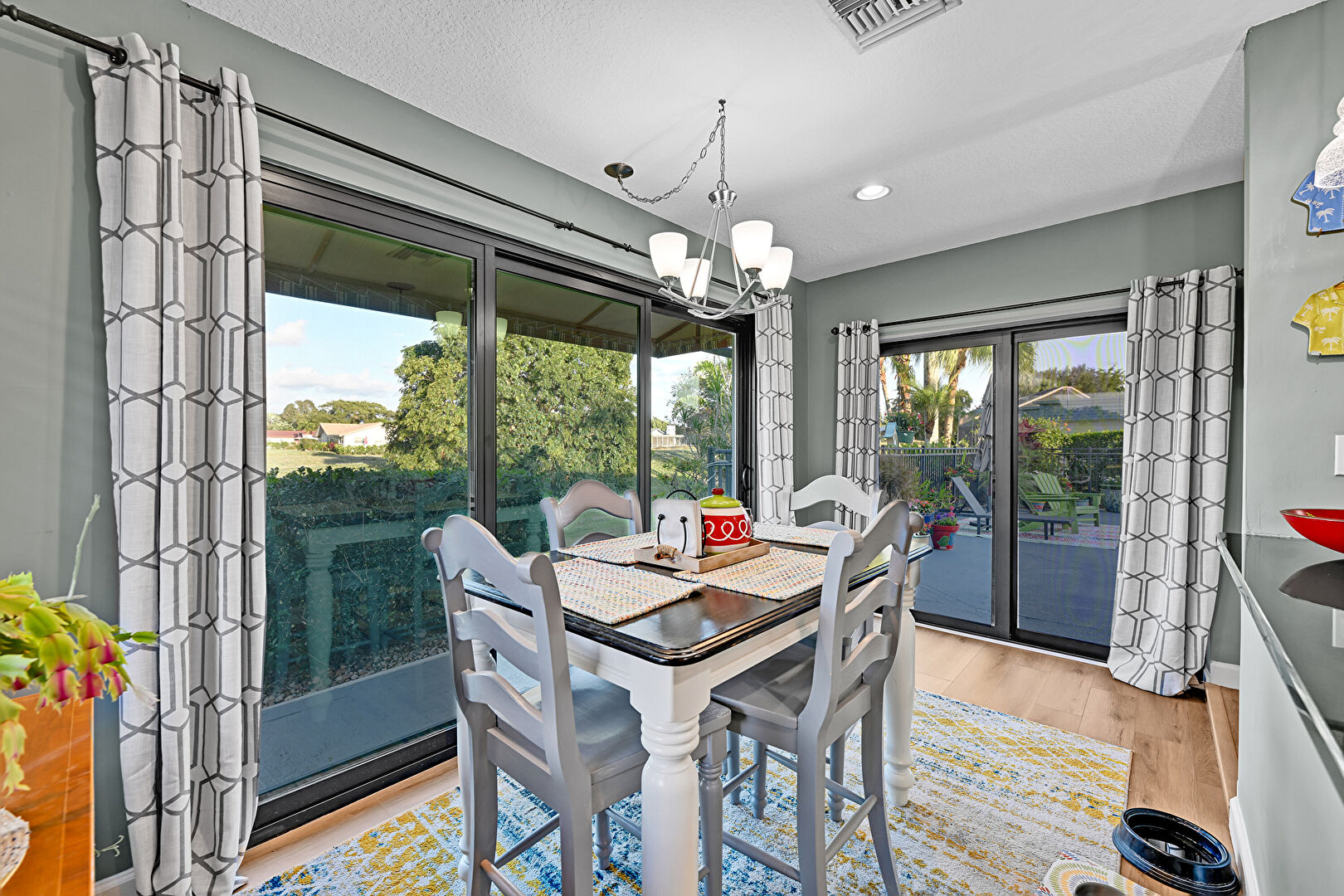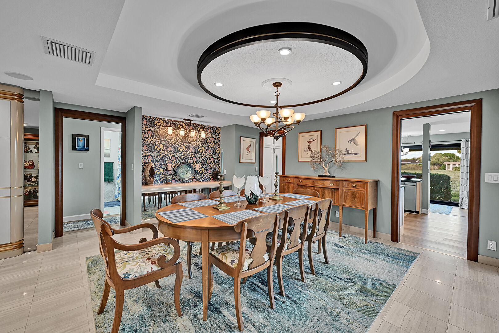 Baseboards Wall, Ceiling Fan, Drywall, French Doors, Natural Light, Notable Chandelier, Recessed Lighting, Textured Ceiling, Tile Floor, Tray Ceiling, Vent, Vinyl Floor, Wood Finish Floor, Baseboards Wall, Notable Chandelier, Textured Ceiling, Vent