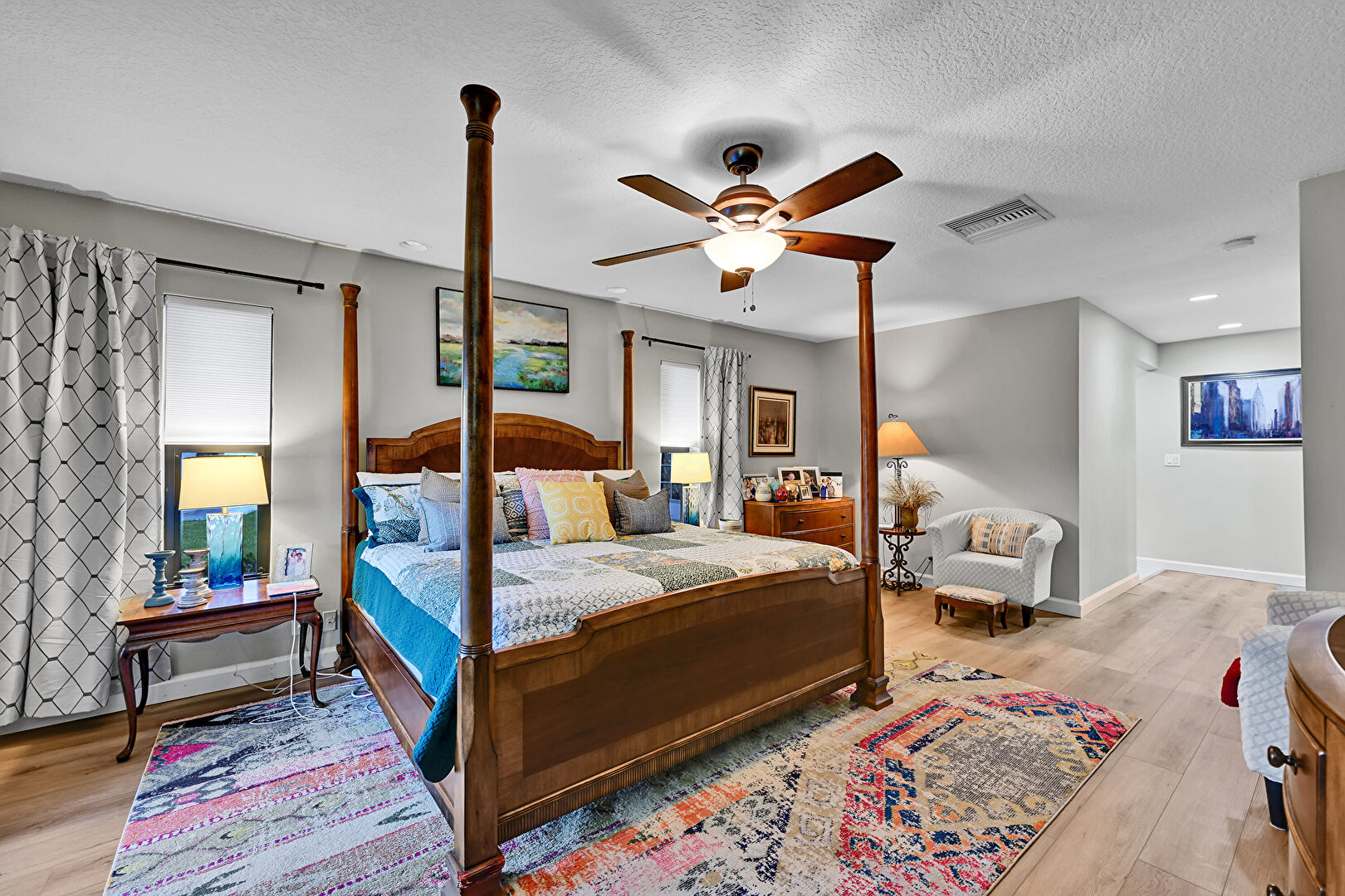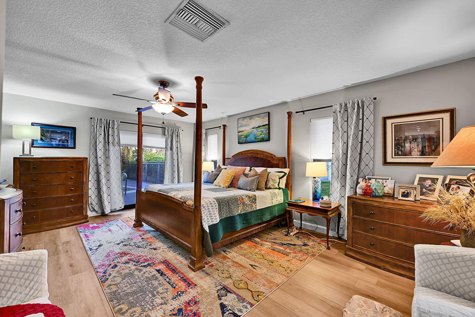 Access To Exterior, Baseboards Wall, Ceiling Fan, Drywall, Natural Light, Recessed Lighting, Textured Ceiling, Vent, Wood Finish Floor, Ceiling Fan, Natural Light, Vent