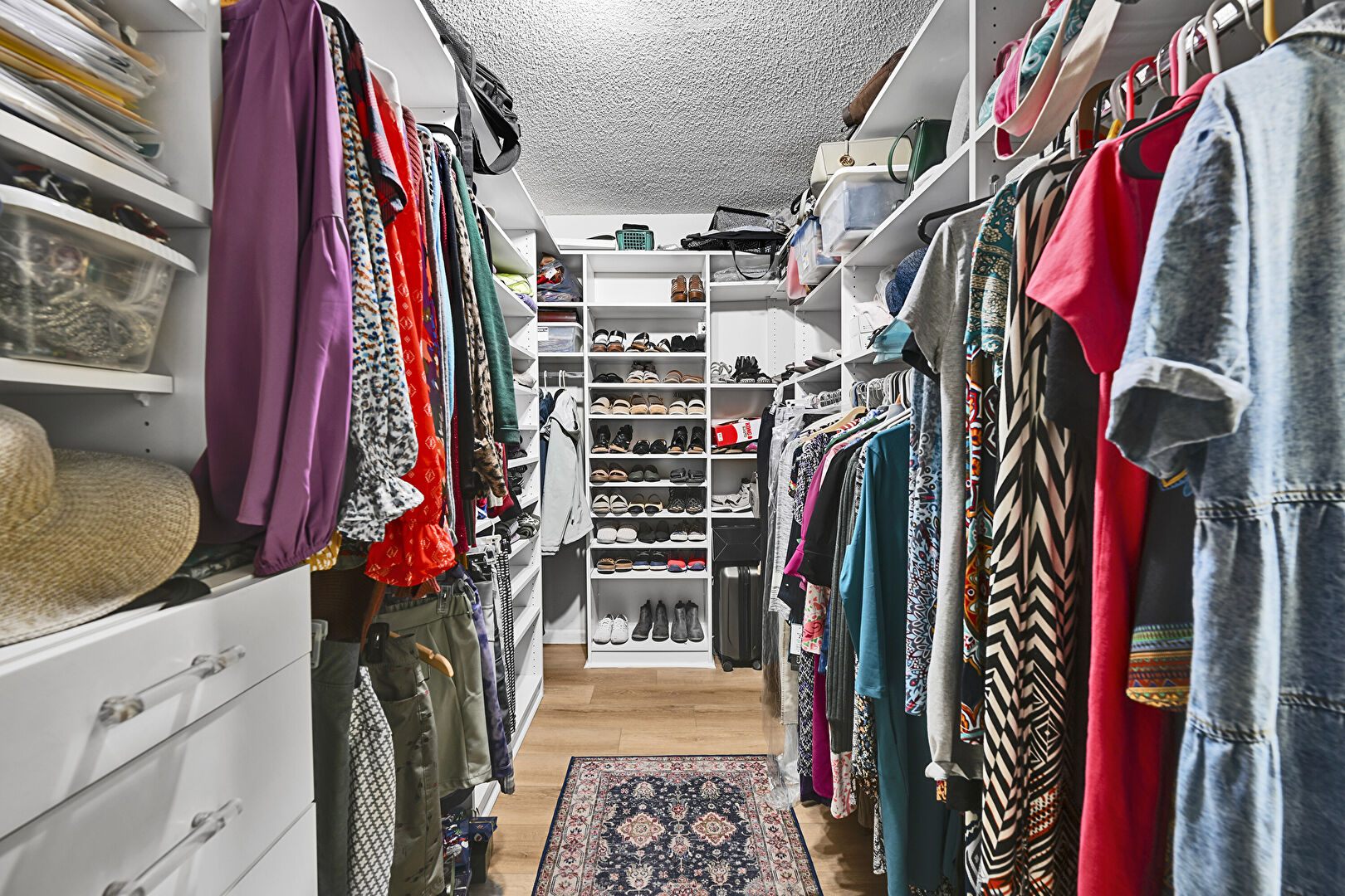 Baseboards Wall, Carpet, Ceiling Fan, Drywall, Natural Light, Office Area, Textured Ceiling, Vent, Wood Finish Floor, Baseboards Wall, Ceiling Fan, Closet