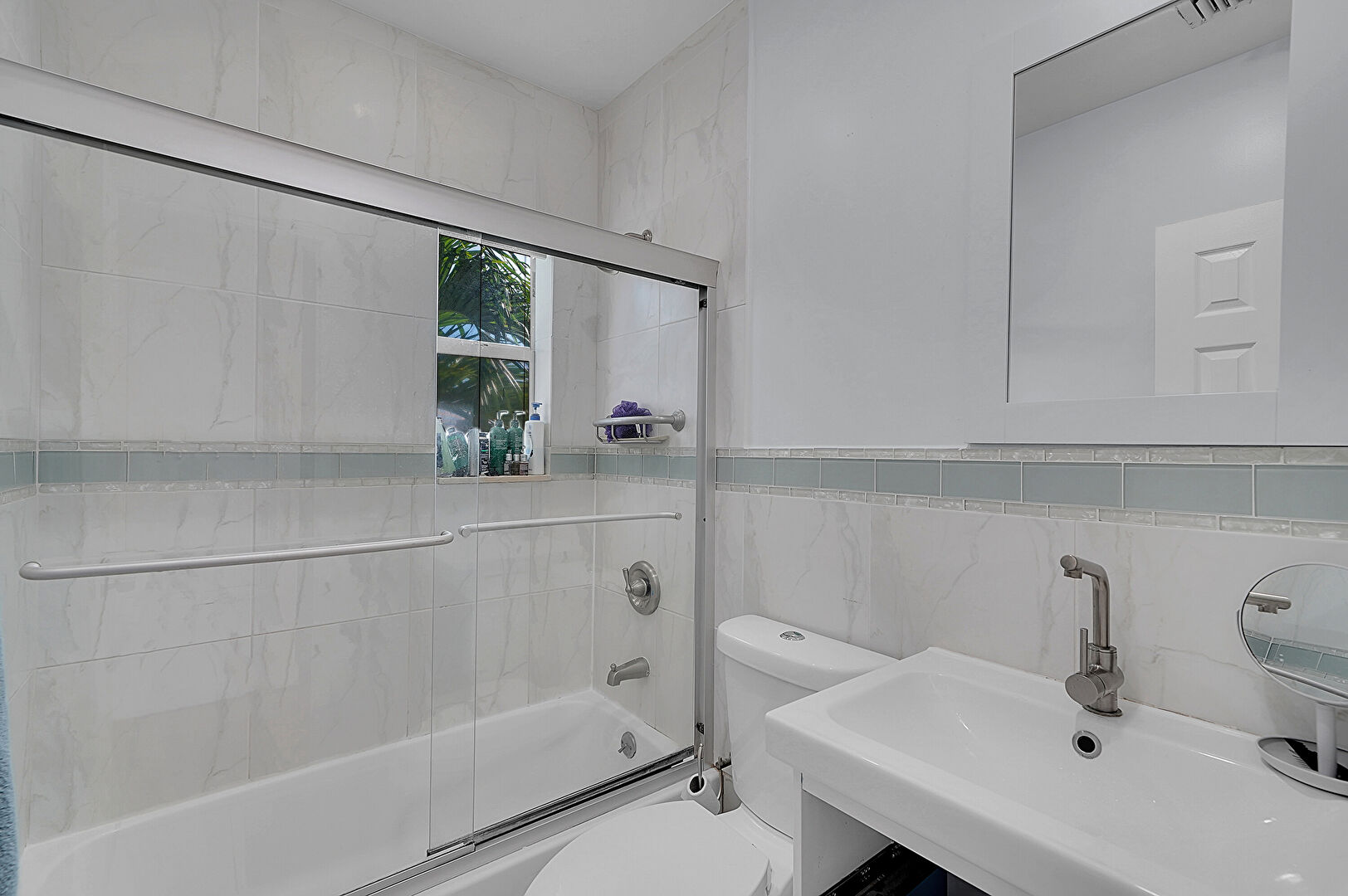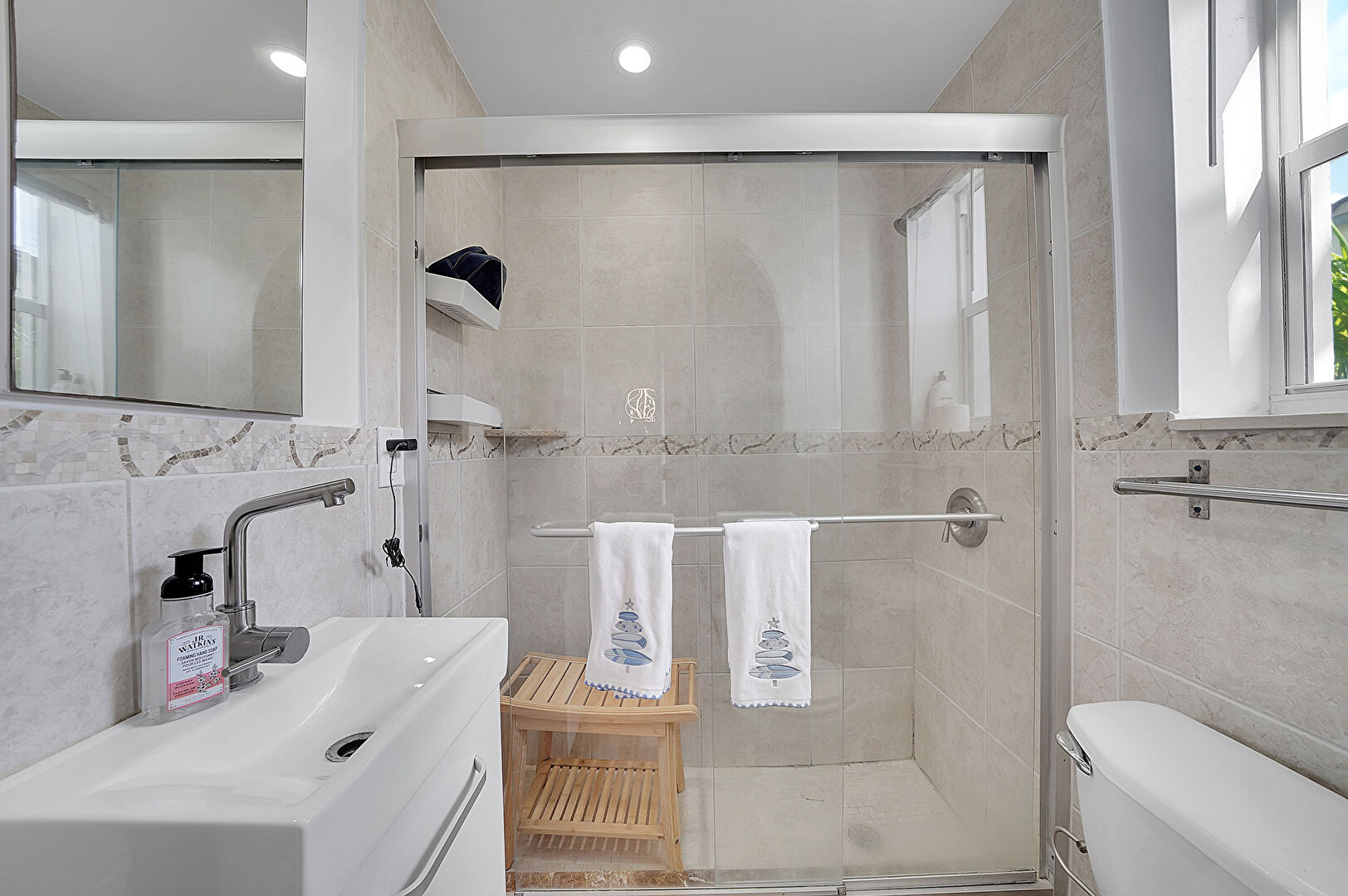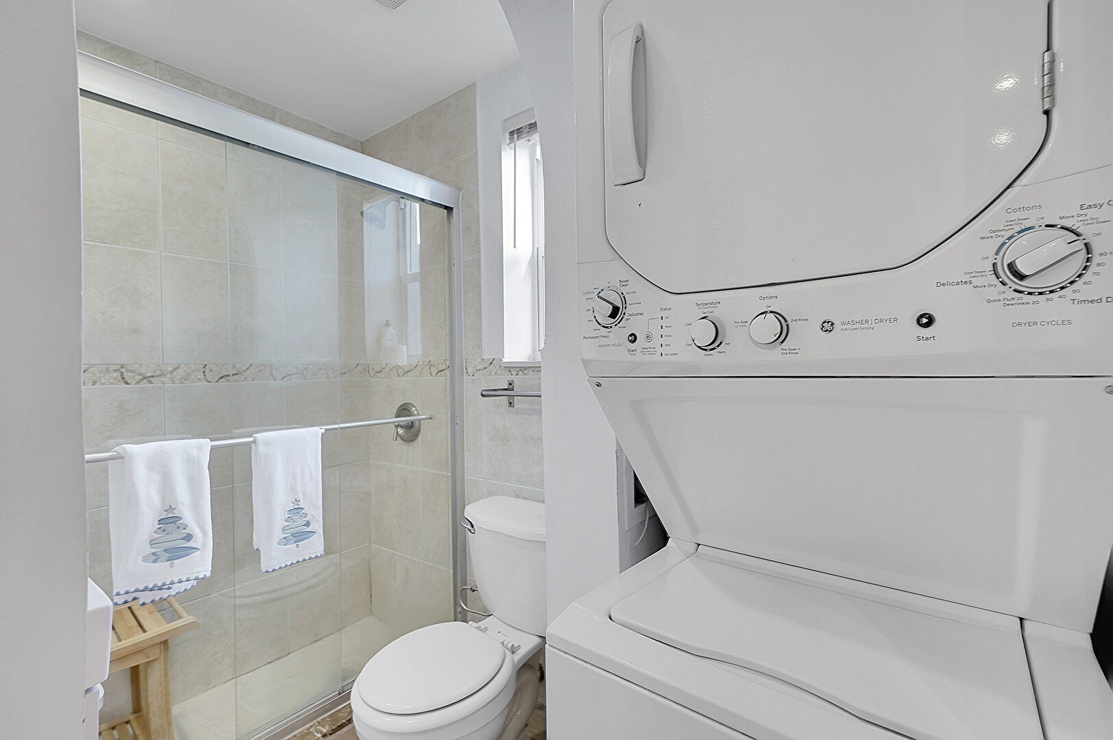 Combined Bath Shower, Drywall, Full Bathroom, Natural Light, Recessed Lighting, Tile Wall, Laundry, Vanity, Wainscot Wall