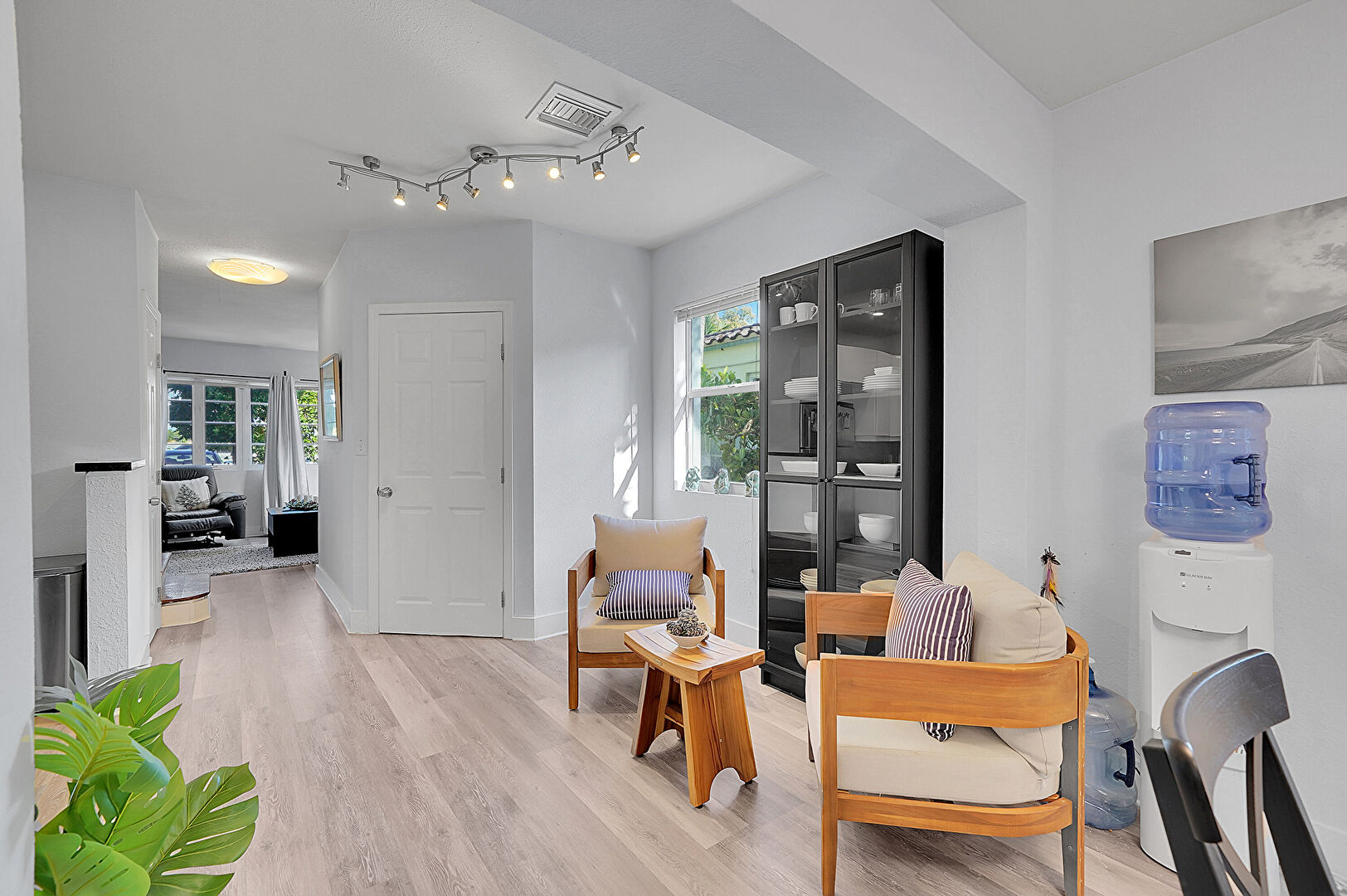 Baseboards Wall, Drywall, Natural Light, Notable Chandelier, Track Lighting, Wood Finish Floor, Notable Chandelier, Wood Finish Floor