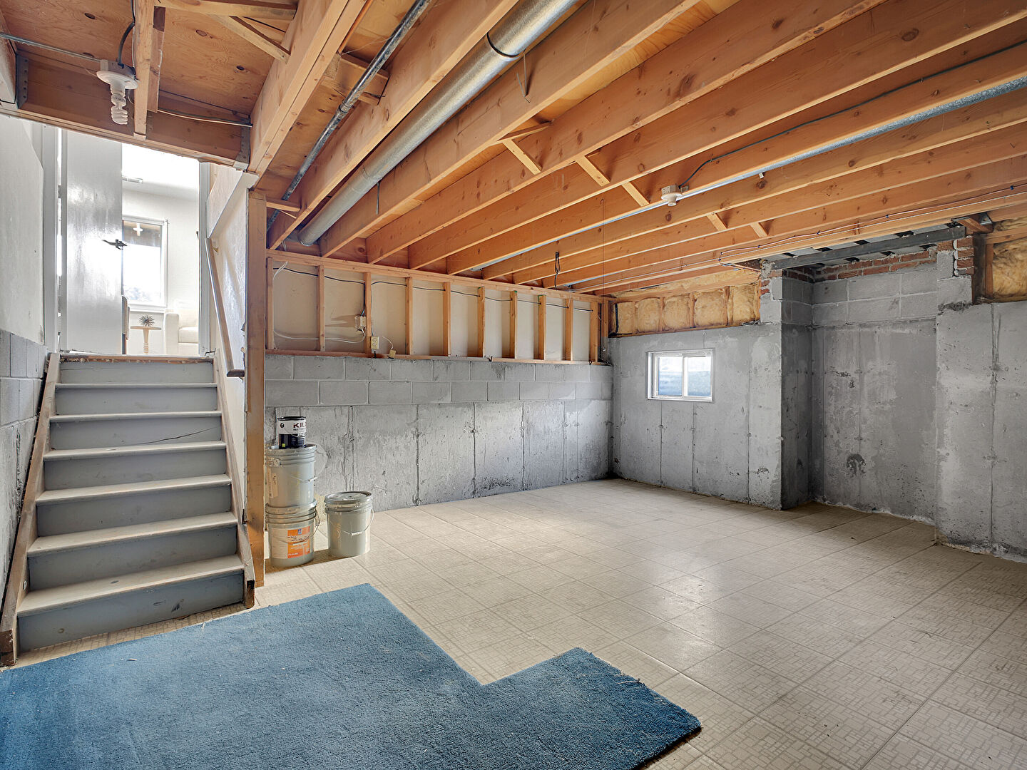 Basement, Concrete Foundation, Natural Light, Stairs, Vinyl Floor