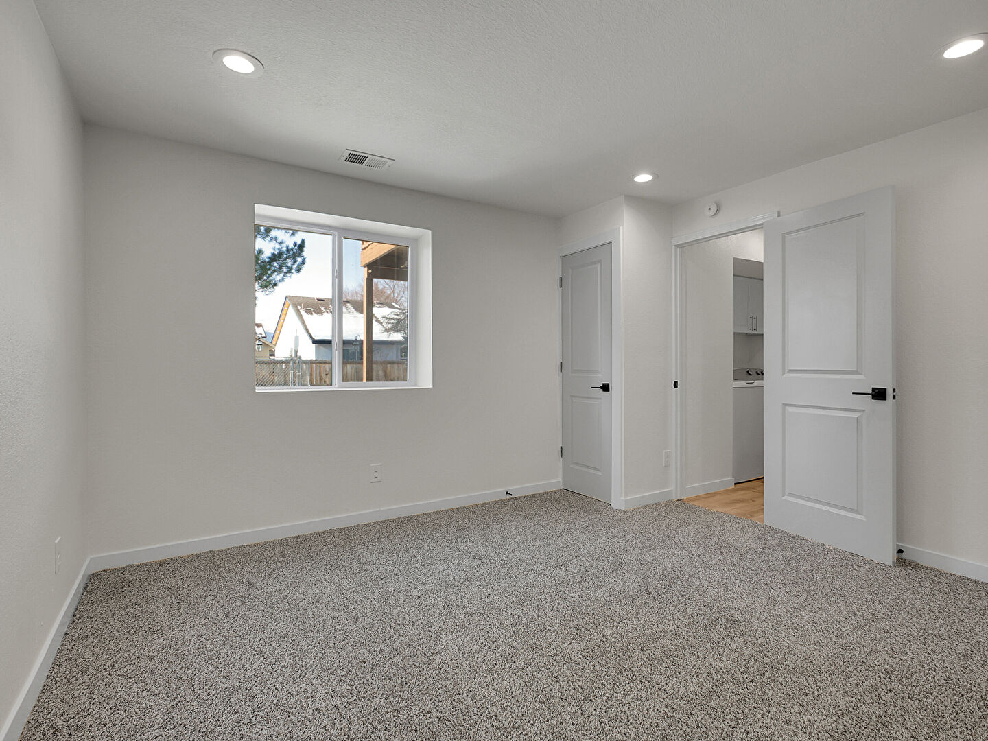 Access To Exterior, Baseboards Wall, Carpet, Closet, Drywall, Laundry, Natural Light, Recessed Lighting, Vent, Walk In Closet, Washer Dryer, Wood Finish Floor, Baseboards Wall, Carpet, Drywall, Ensuite Bathroom, Natural Light, Recessed Lighting, Vent, Wood Finish Floor