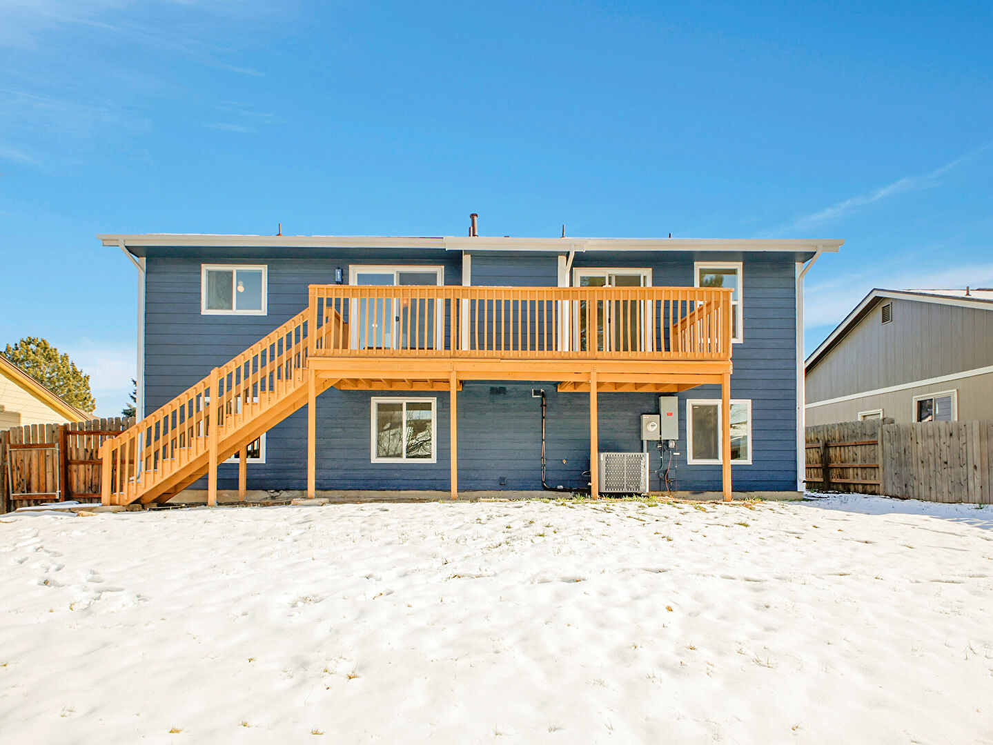 Central Ac, Concrete Foundation, Deck, Downspout, Electric Meter, Fence, Gutters, Horizontal Siding, Patio, Stairs, Deck, Fence