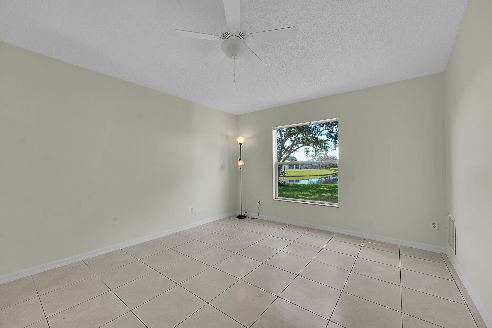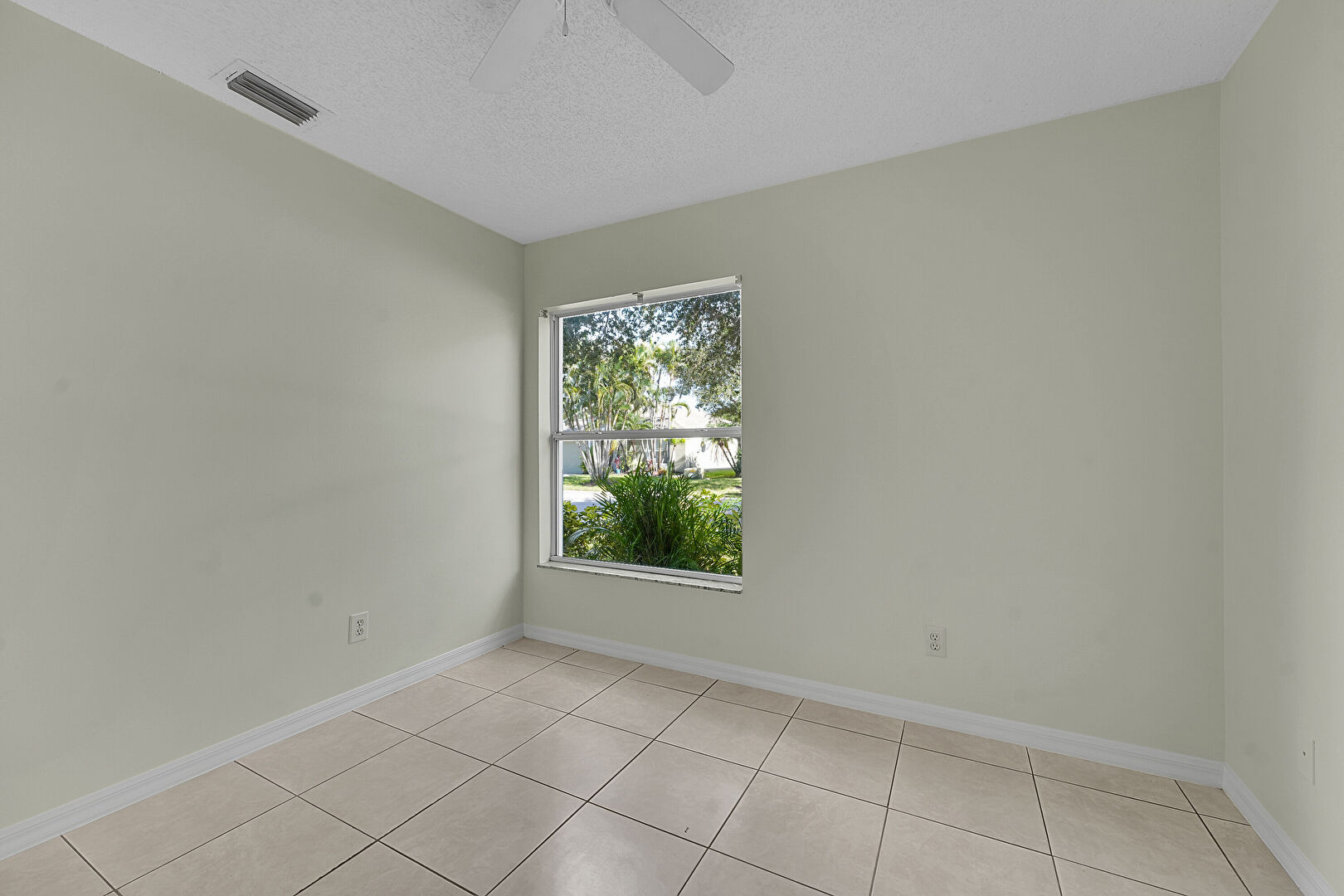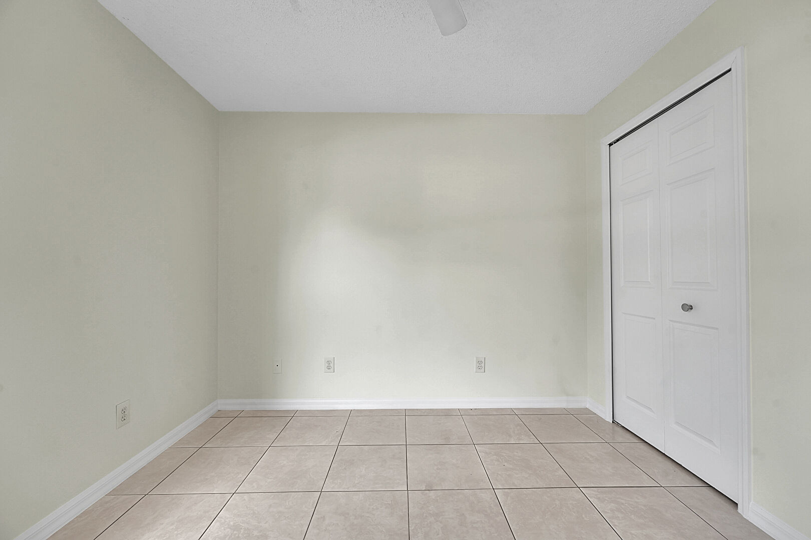 Baseboards Wall, Ceiling Fan, Drywall, Natural Light, Textured Ceiling, Tile Floor, Vent, Baseboards Wall, Ceiling Fan, Closet