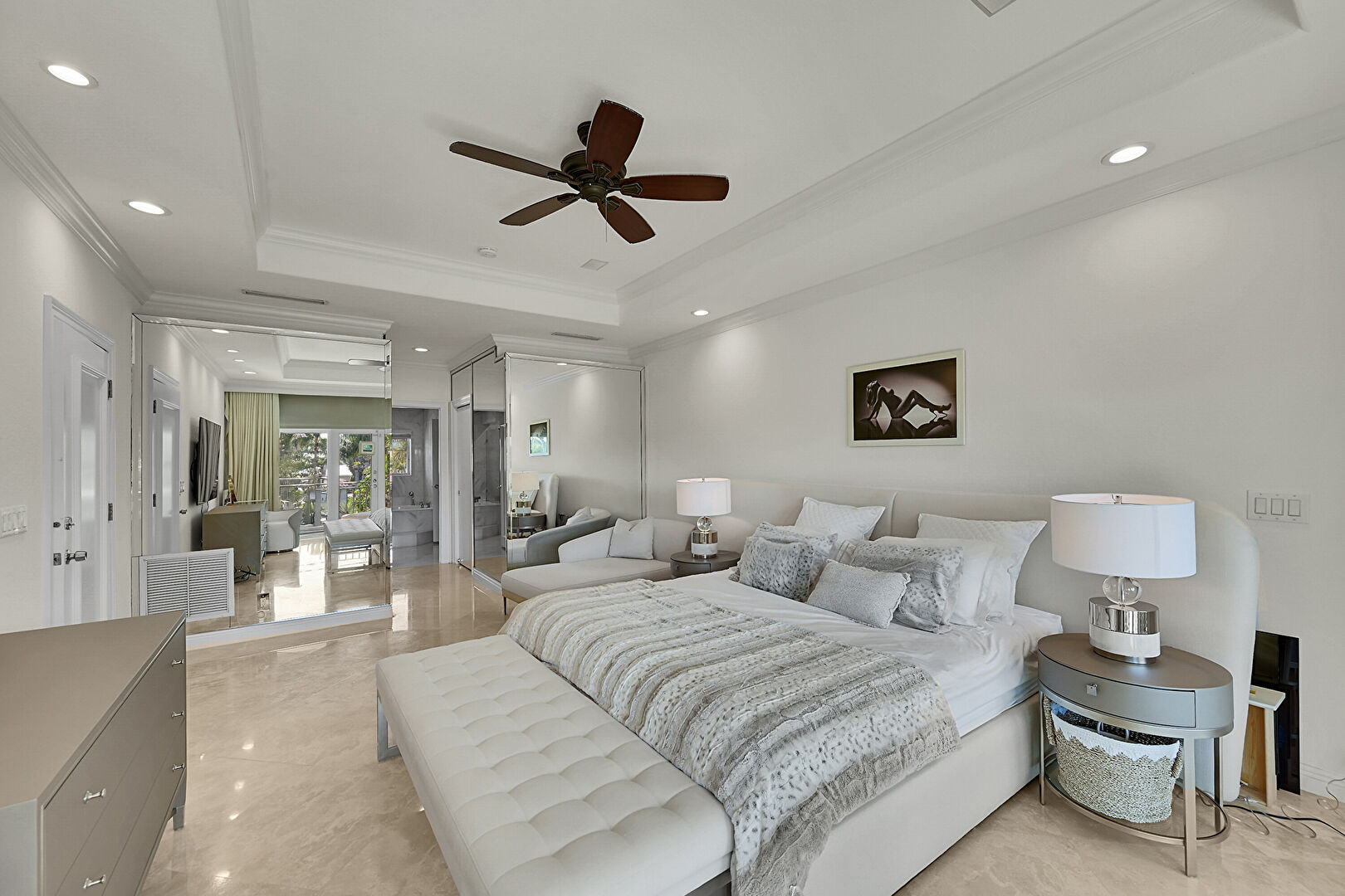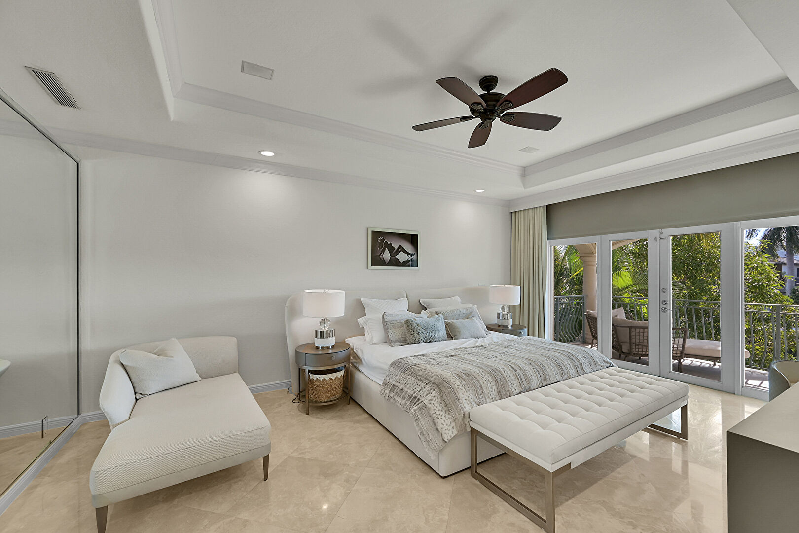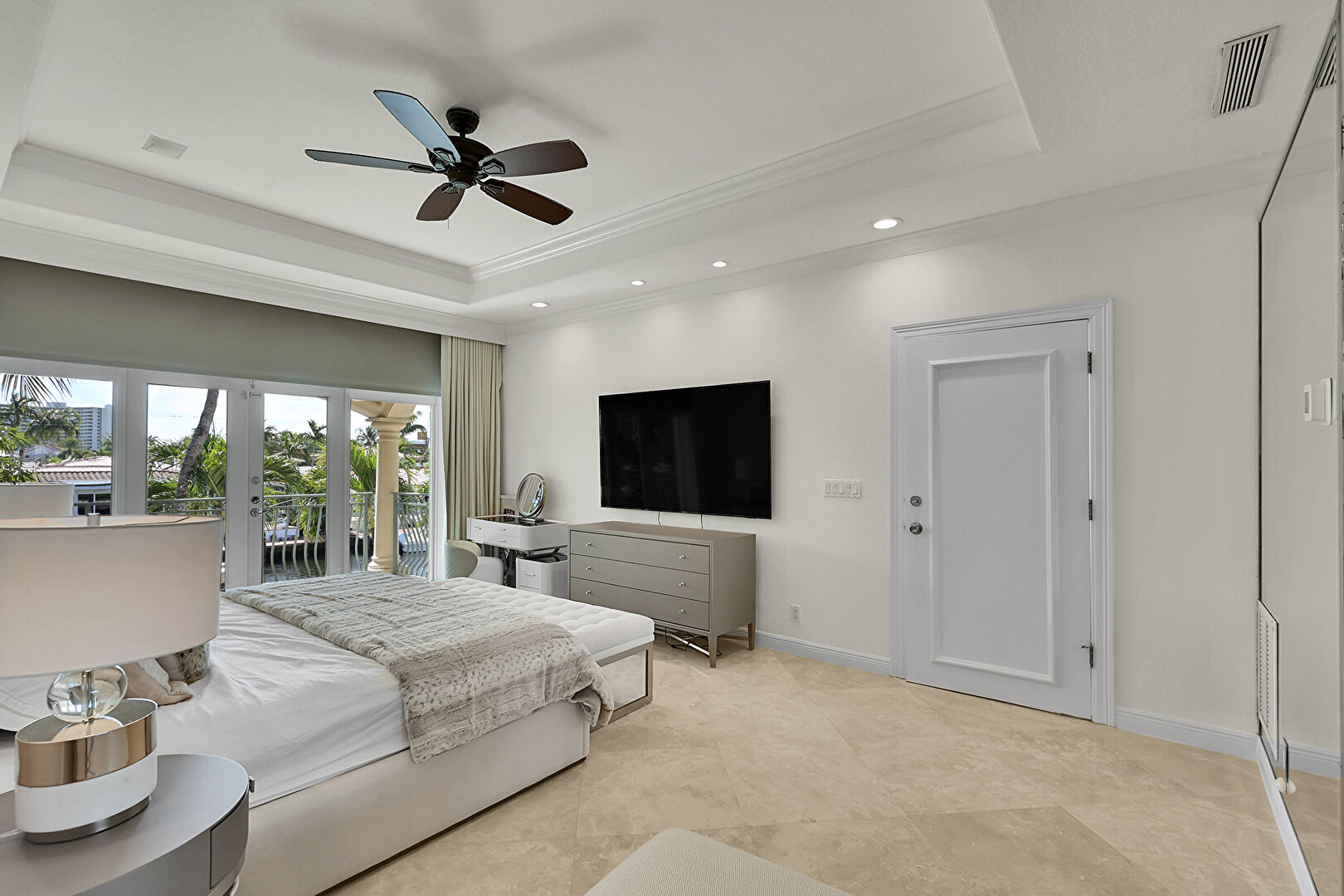 Access To Exterior, Baseboards Wall, Carpet, Ceiling Fan, Closet, Crown Molding, Drywall, French Doors, Marble Finish Floor, Natural Light, Recessed Lighting, Tray Ceiling, Vent, Baseboards Wall, Ceiling Fan, Recessed Lighting