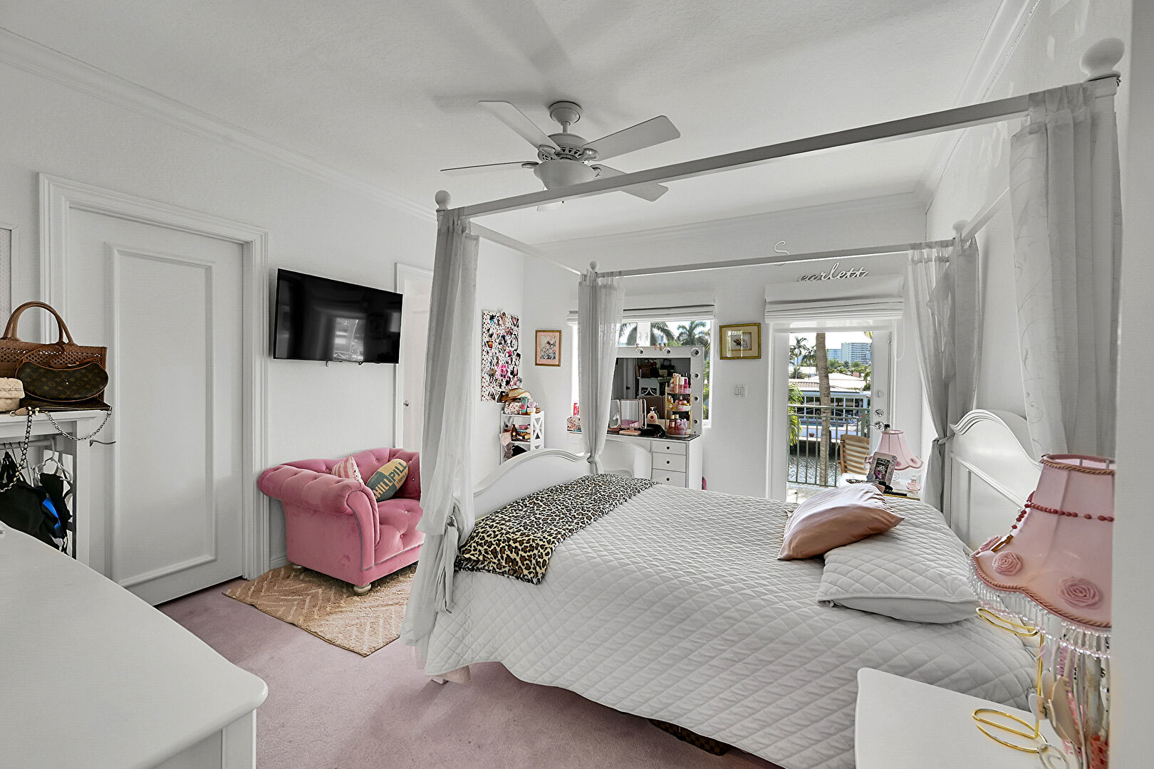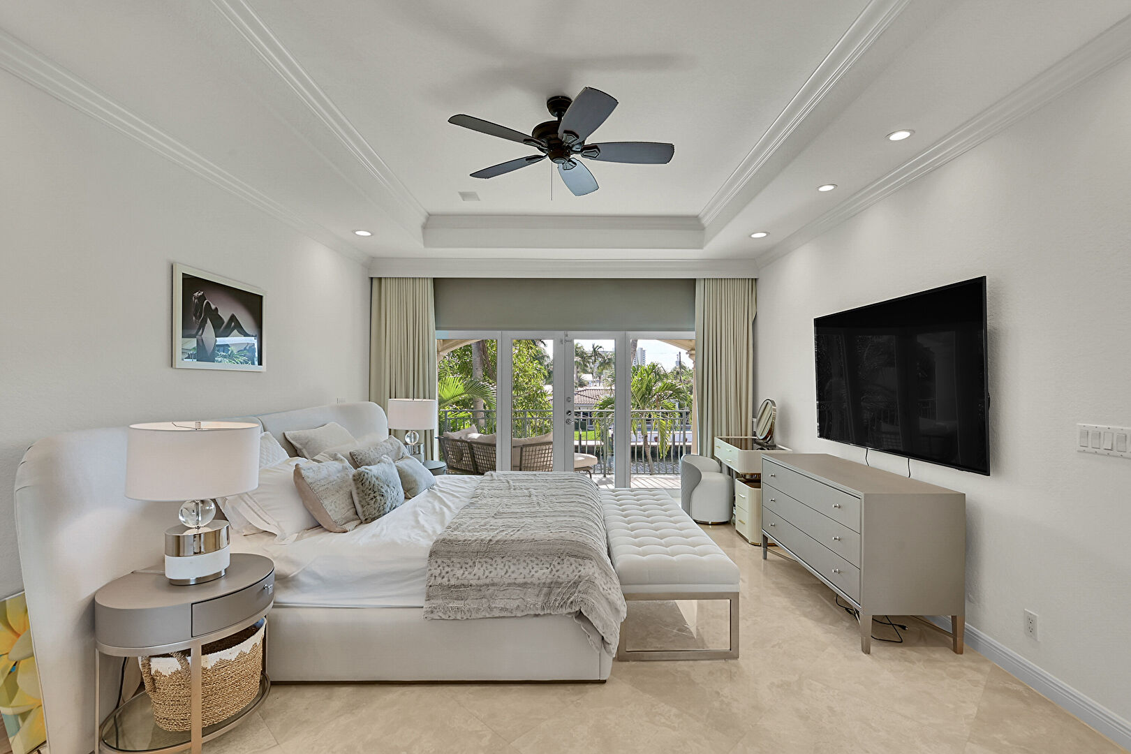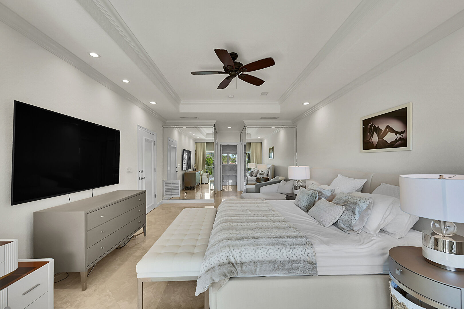 Access To Exterior, Baseboards Wall, Carpet, Ceiling Fan, Closet, Crown Molding, Drywall, French Doors, Marble Finish Floor, Natural Light, Recessed Lighting, Tray Ceiling, Vent, Baseboards Wall, Ceiling Fan, Recessed Lighting