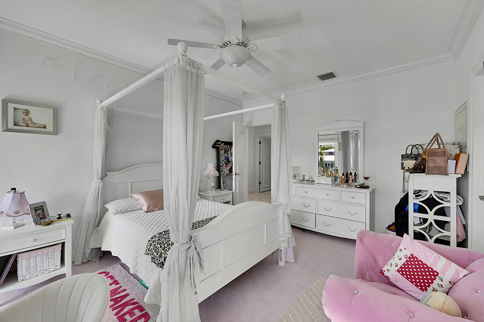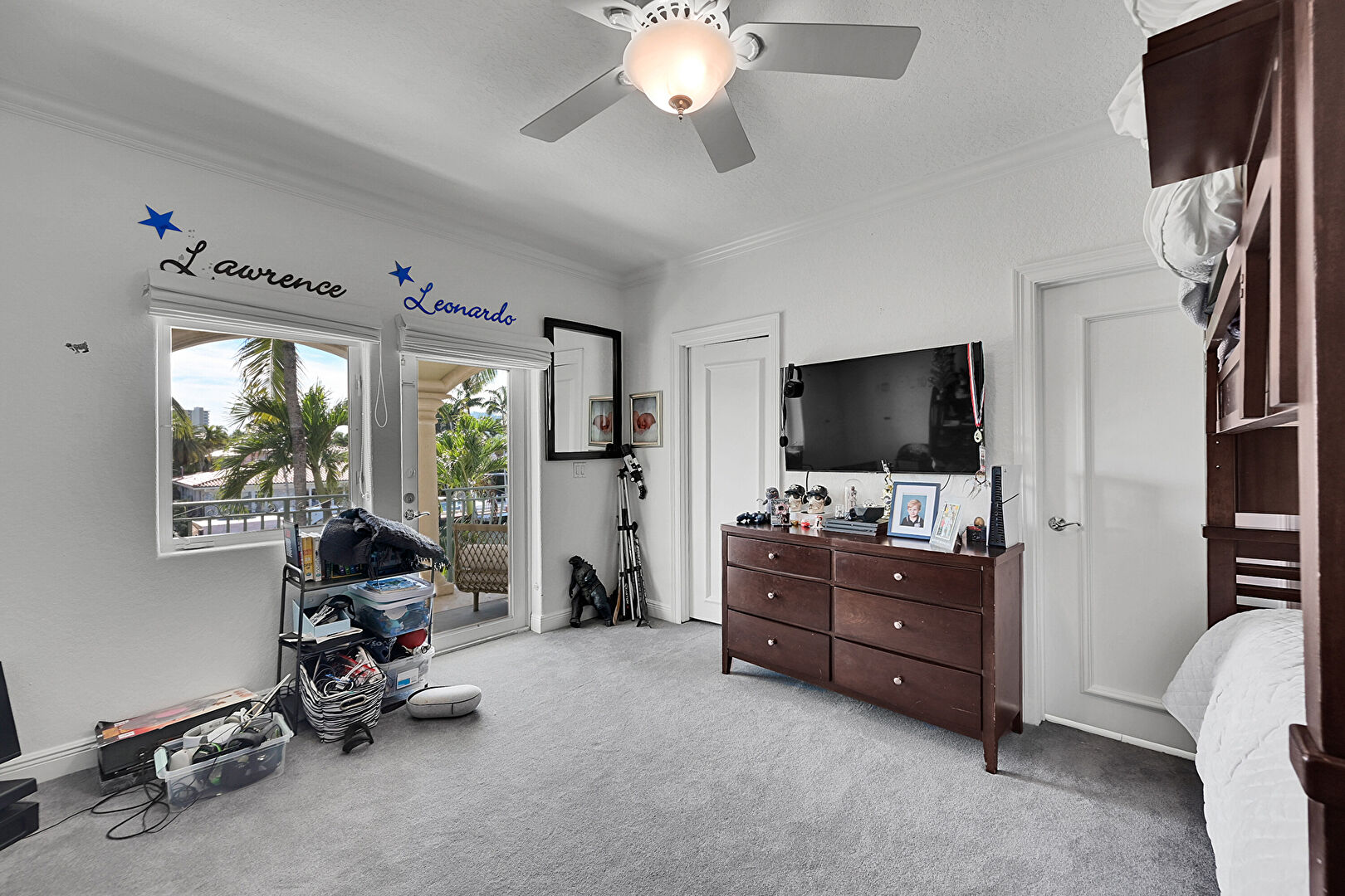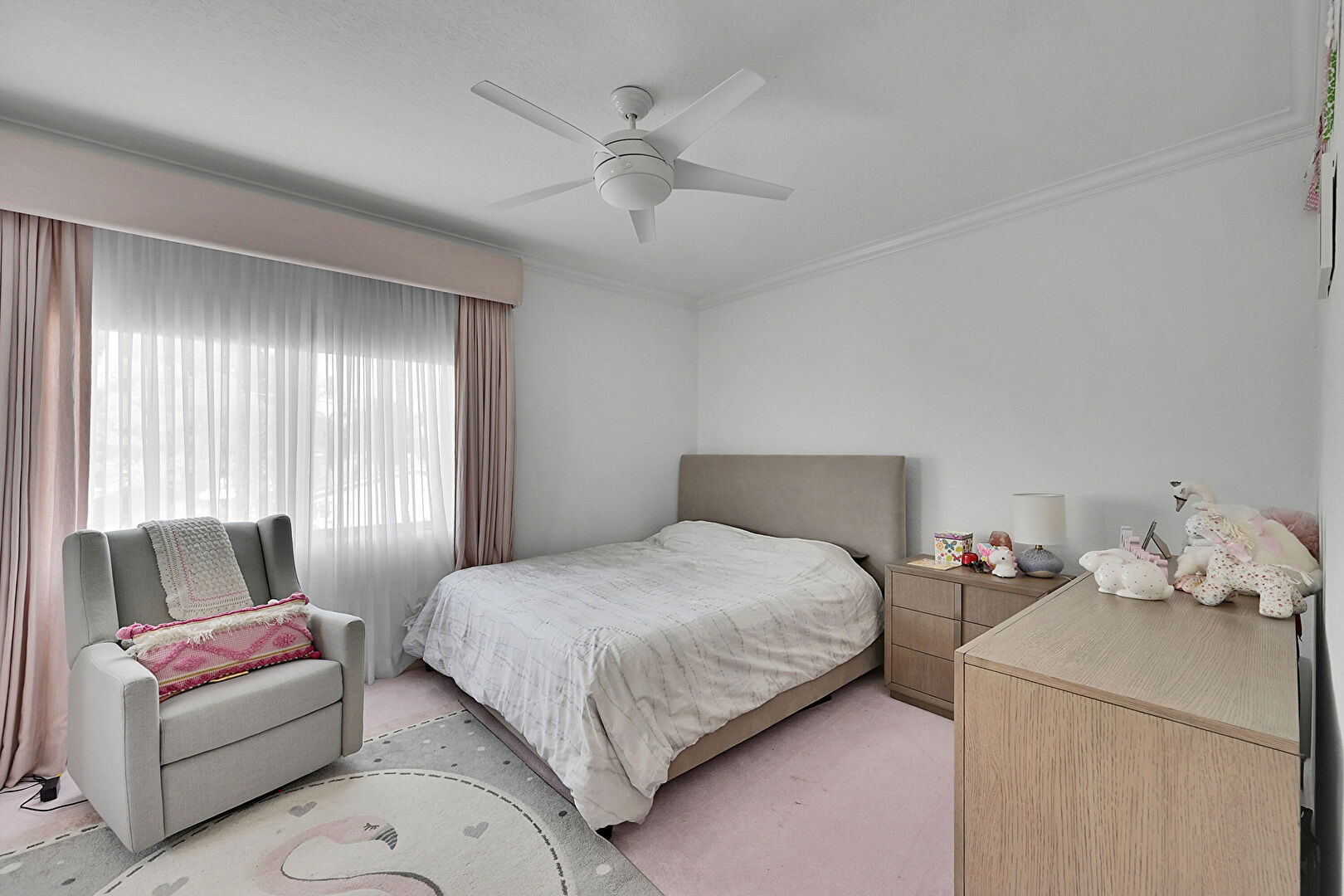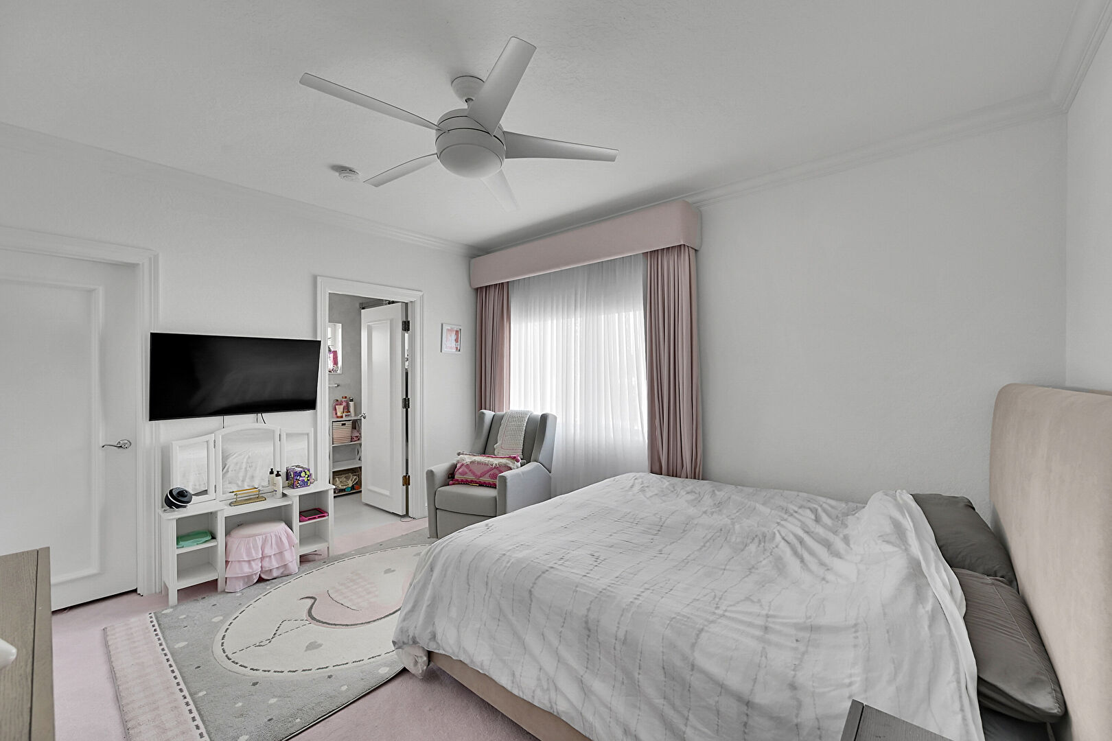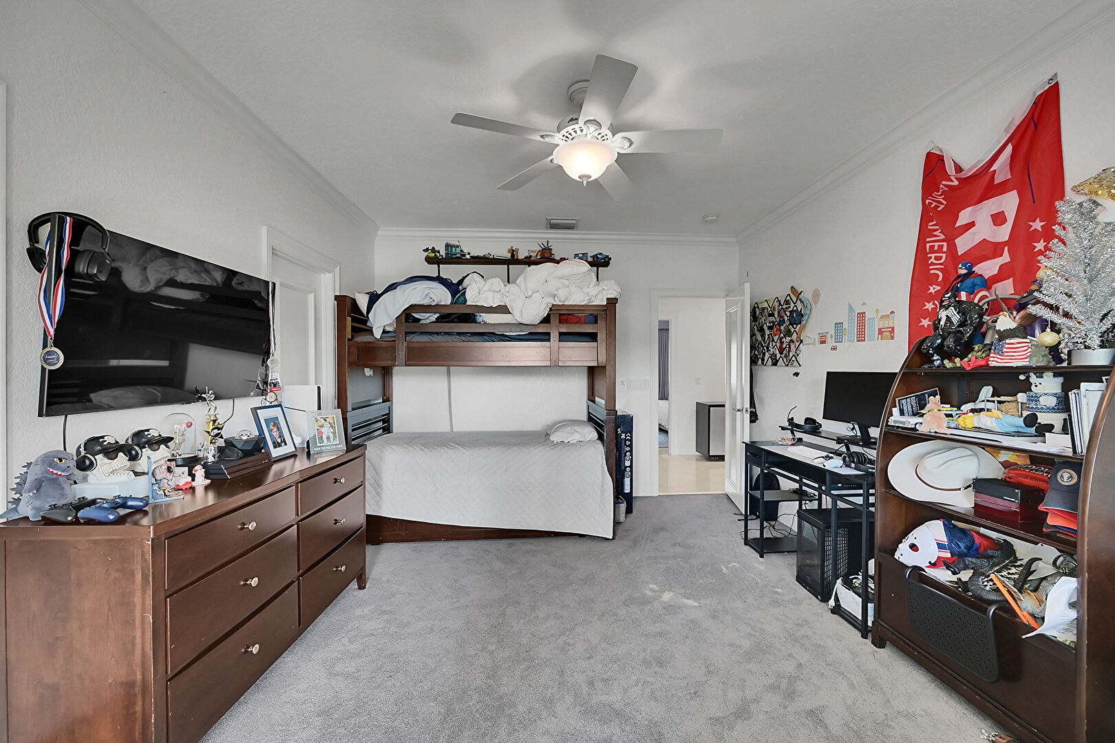 Baseboards Wall, Carpet, Ceiling Fan, Crown Molding, Natural Light, Ceiling Fan, Drywall