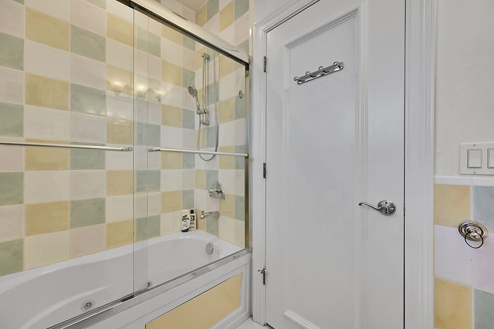 Combined Bath Shower, Drywall, Full Bathroom, Half Bathroom, Natural Light, Tile Wall, Vanity, Wainscot Wall, Drywall, Full Bathroom, Half Bathroom, Marble Finish Floor, Natural Light, Tile Wall, Wainscot Wall
