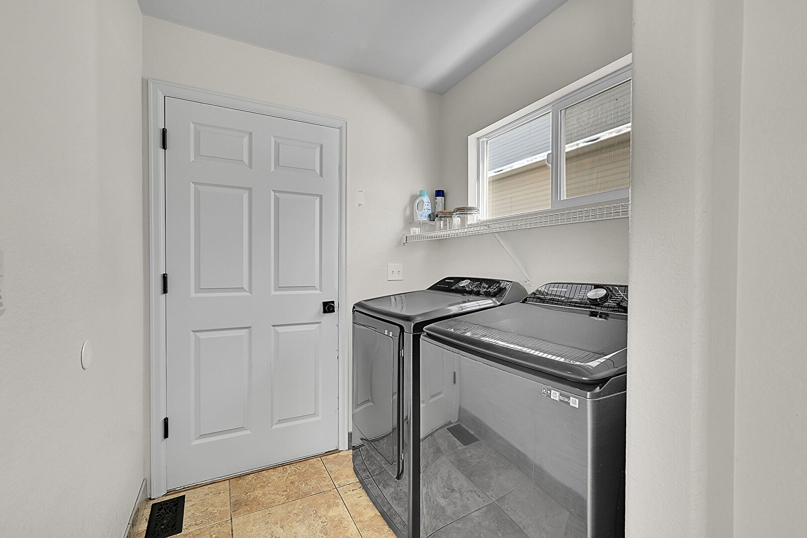 Drywall, Laundry, Natural Light, Tile Floor, Vent, Baseboards Wall