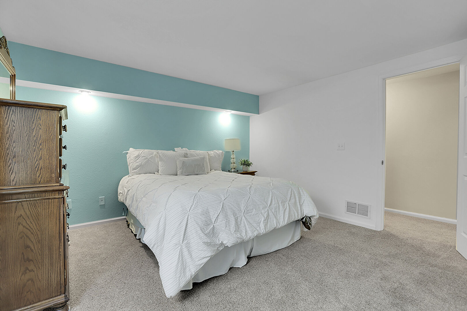 Baseboards Wall, Carpet, Cathedral Ceiling, Ceiling Fan, Drywall, Ensuite Bathroom, Full Bathroom, Natural Light, Recessed Lighting, Two Closets, Vanity, Vaulted Ceiling, Vent, Walk In Closet, Baseboards Wall, Carpet, Cathedral Ceiling, Drywall