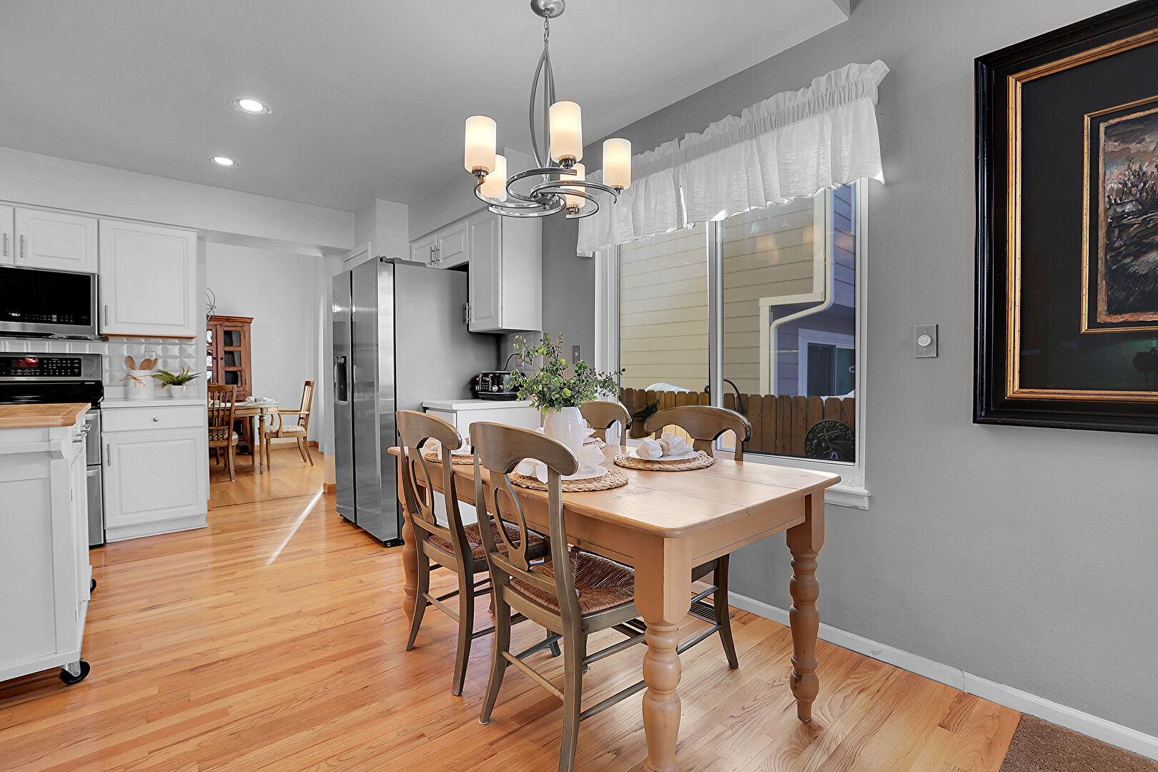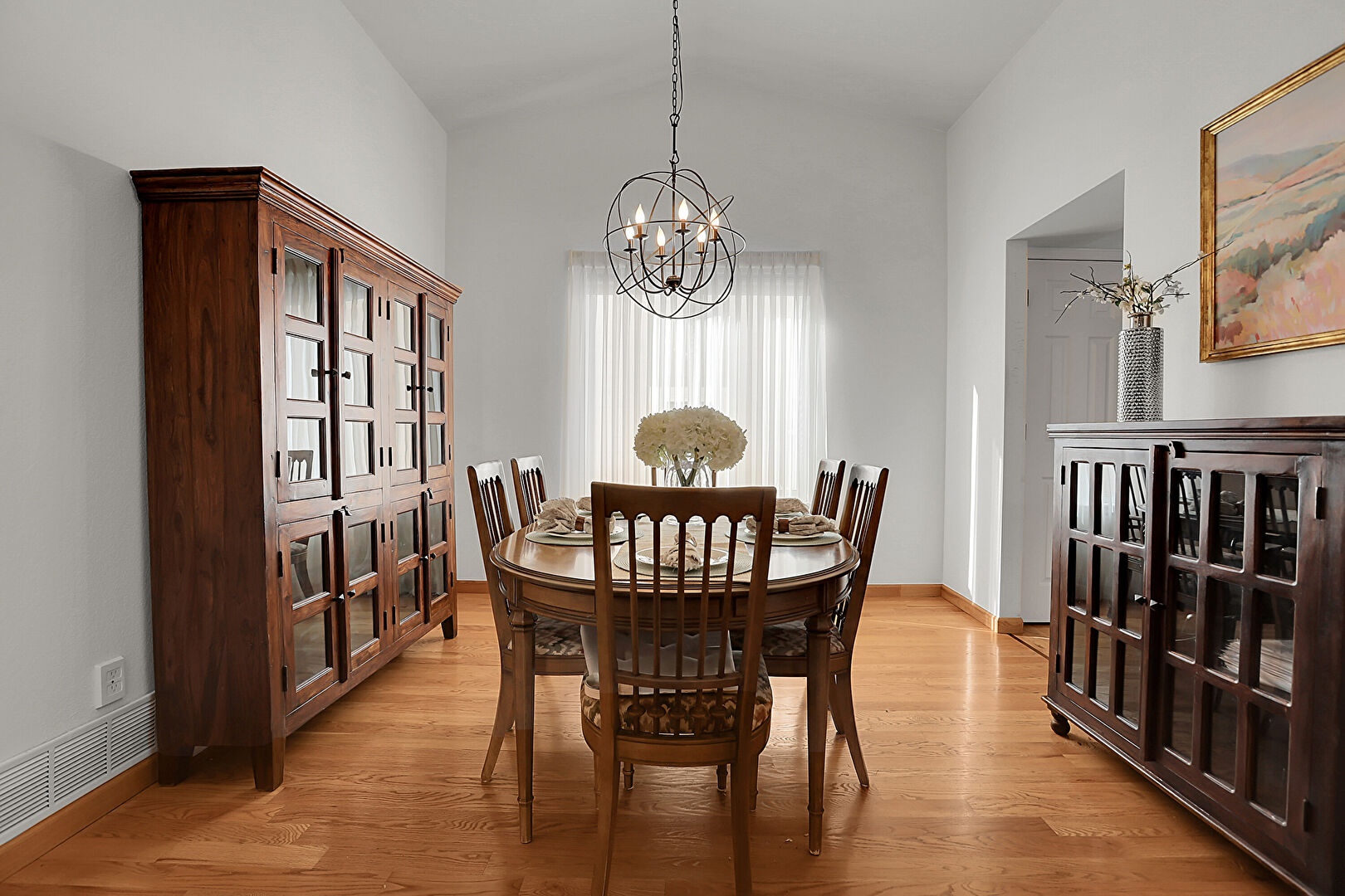 Baseboards Wall, Drywall, Natural Light, Notable Chandelier, Wood Finish Floor