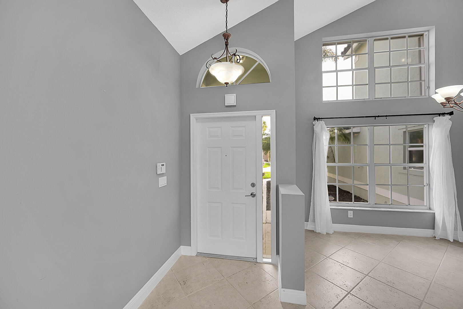 Baseboards Wall, Drywall, High Ceiling, Notable Chandelier, Tile Floor, Vaulted Ceiling, Natural Light