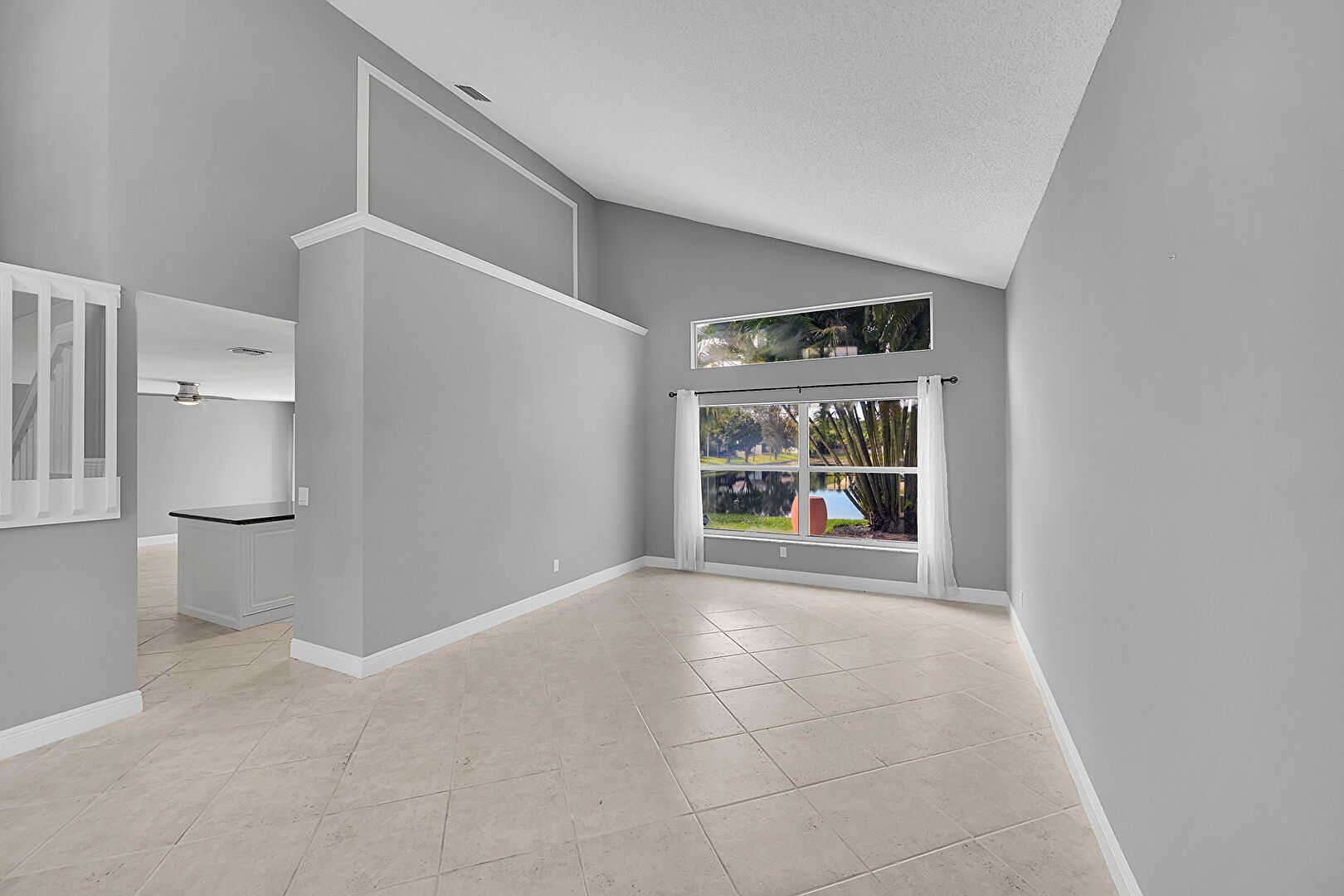 Baseboards Wall, High Ceiling, Natural Light, Tile Floor, Vaulted Ceiling, Drywall