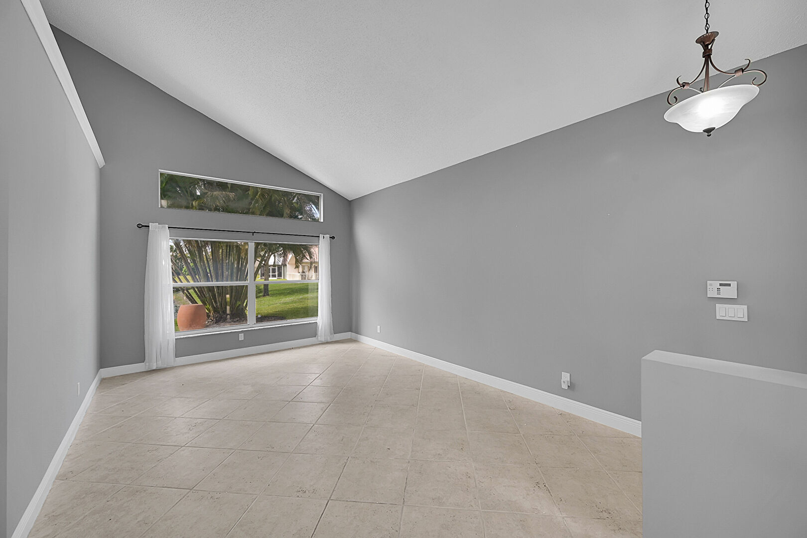 Baseboards Wall, Drywall, High Ceiling, Natural Light, Notable Chandelier, Textured Ceiling, Tile Floor, Vaulted Ceiling, Baseboards Wall, High Ceiling, Natural Light, Vaulted Ceiling