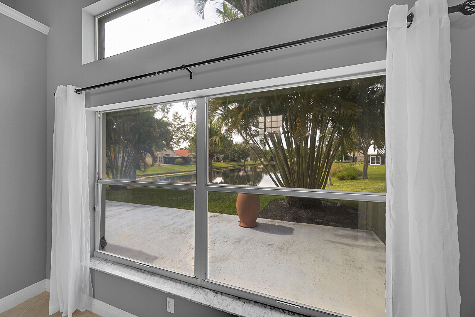 Lawn, Patio, Pondfront, Stucco Siding, Sunroom, Tile Roof, Water View, Waterfront, Lawn, Residential View, Sunroom