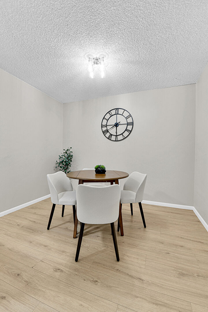 Baseboards Wall, Drywall, Textured Ceiling, Wood Finish Floor