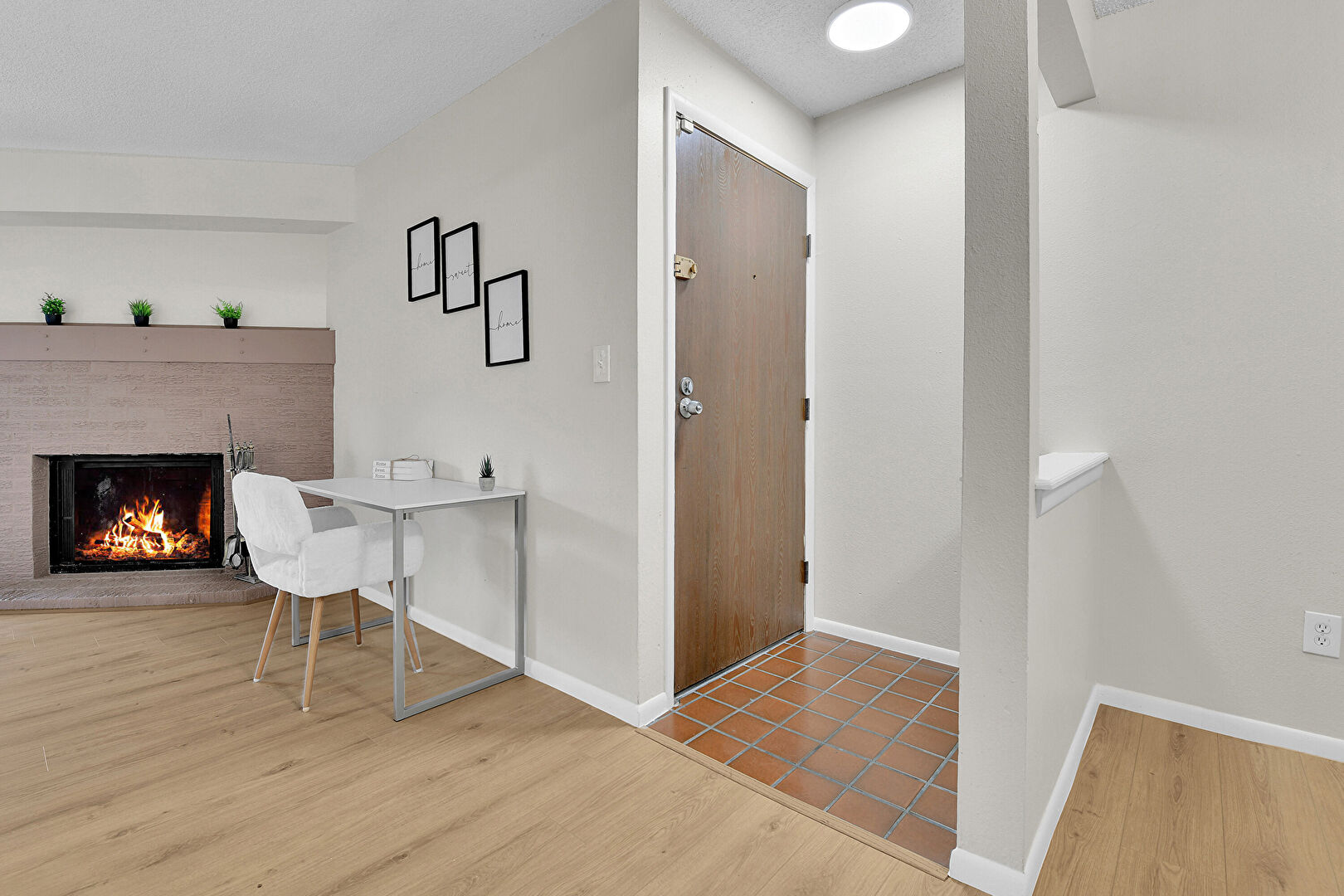 Baseboards Wall, Drywall, Fireplace, Natural Light, Textured Ceiling, Wood Finish Floor, Baseboards Wall, Drywall, Fireplace