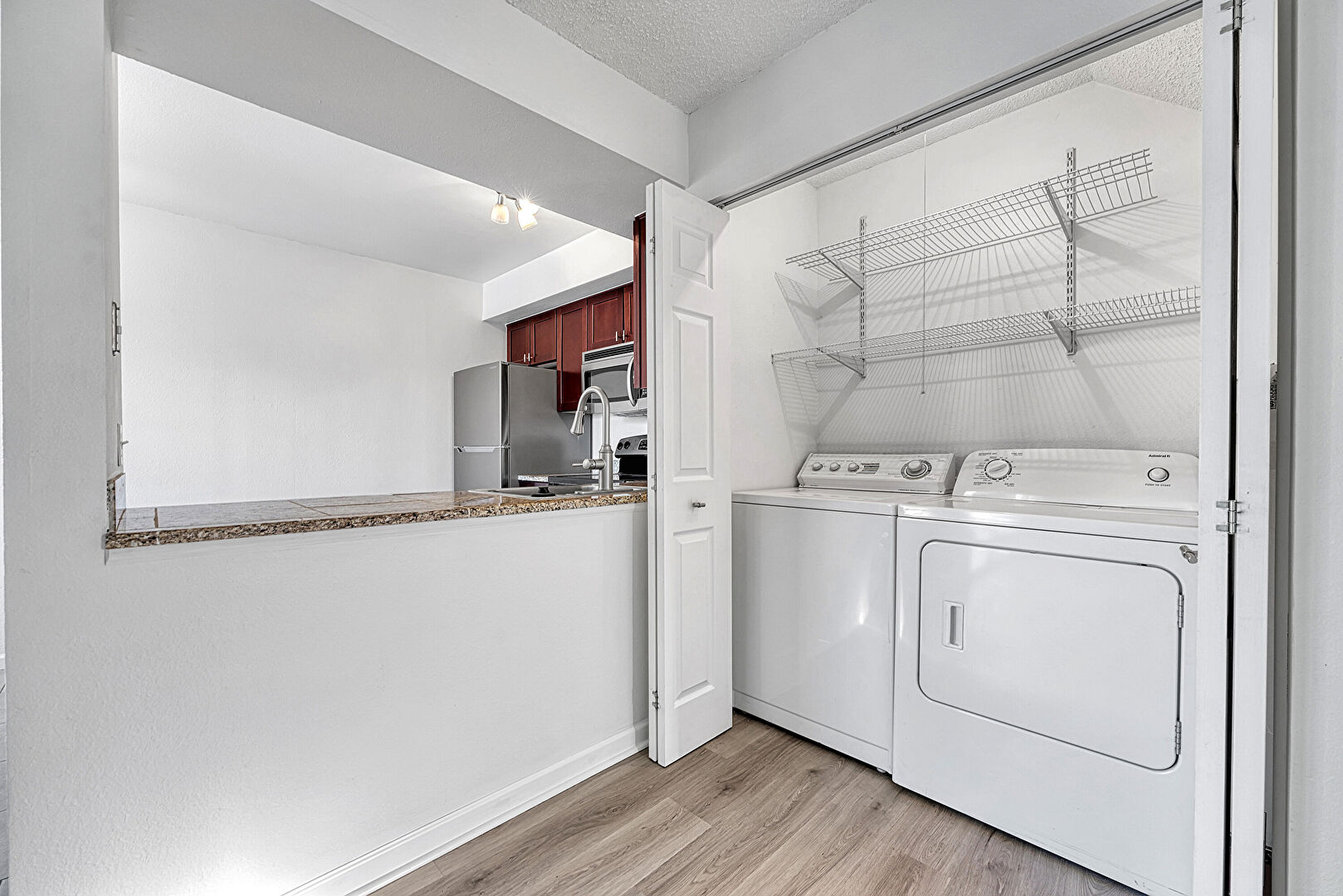 Baseboards Wall, Drywall, Laundry, Wood Finish Floor, Textured Ceiling