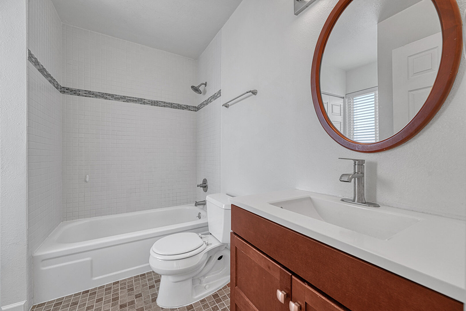 Drywall, Full Bathroom, Tile Floor, Vanity, Combined Bath Shower