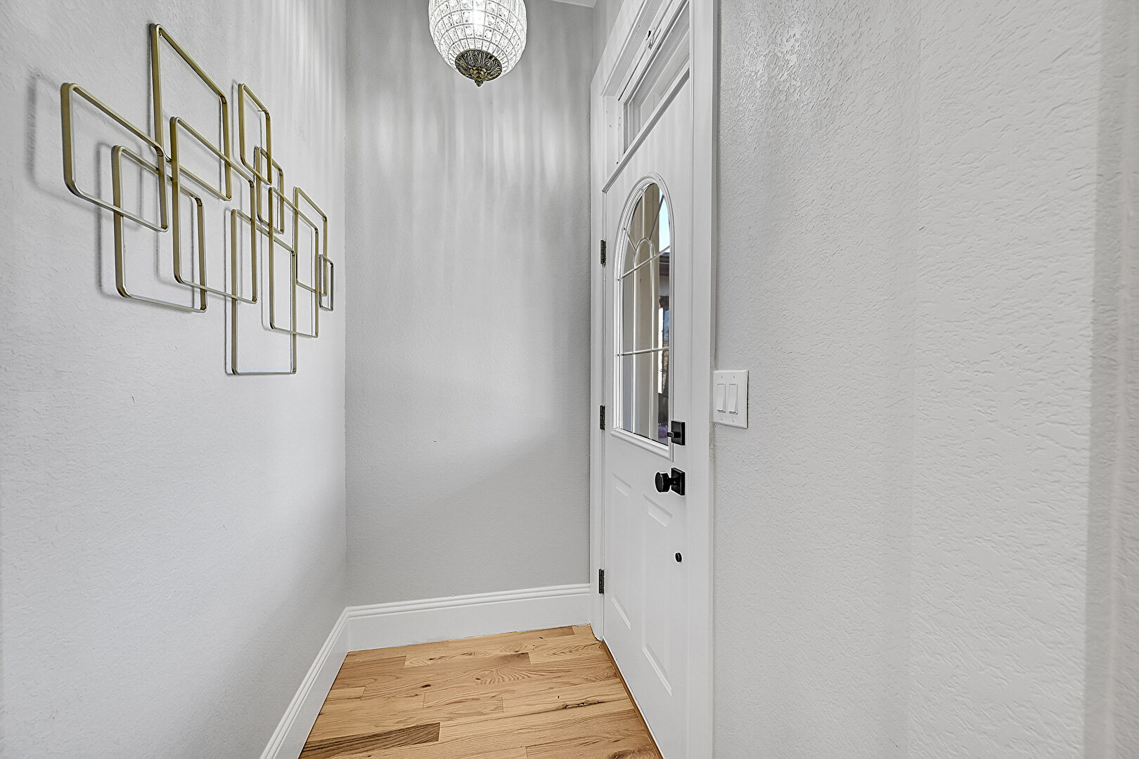 Baseboards Wall, Textured Wall, Wood Finish Floor, Notable Chandelier
