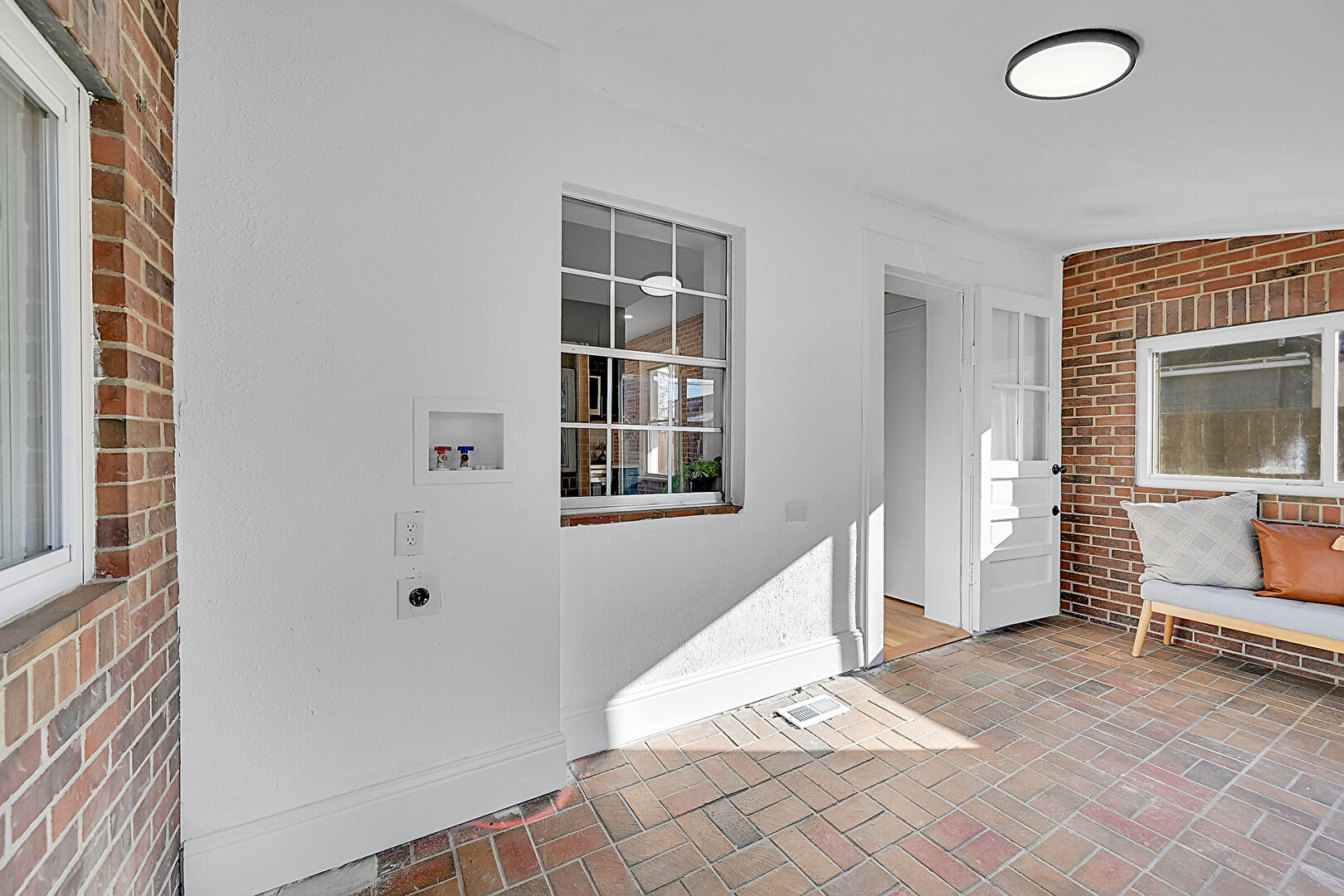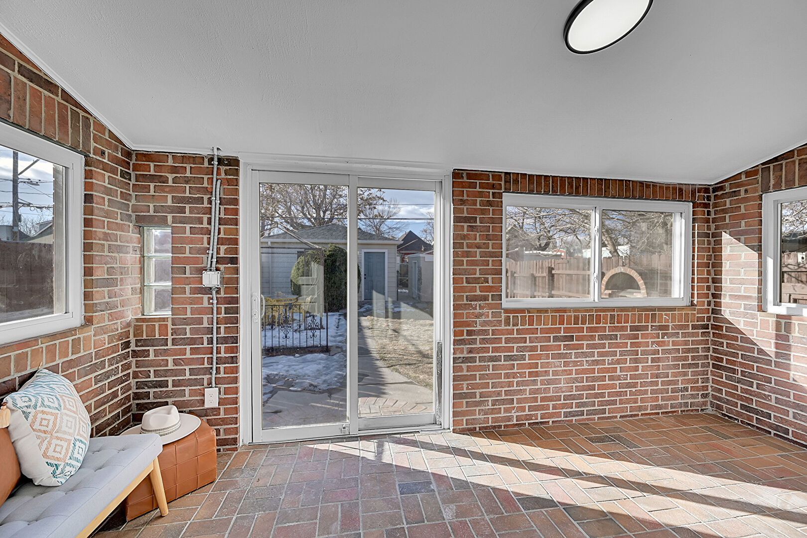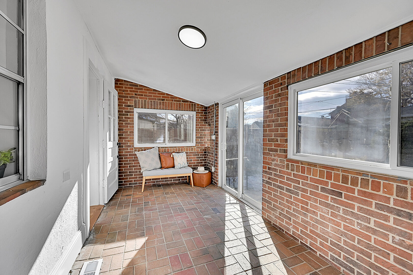 Brick Finish Floor, Brick Wall, Sunroom, Vaulted Ceiling, Vent, Natural Light, Vent