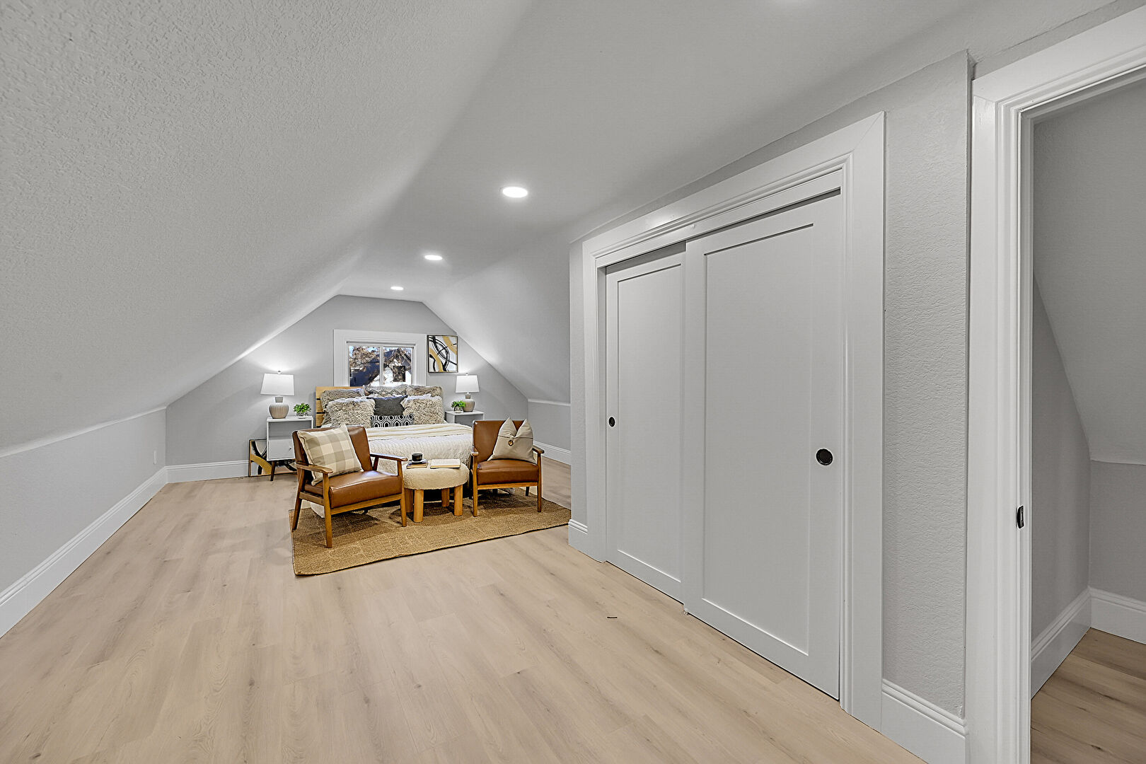 Baseboards Wall, Bonus Room, Cathedral Ceiling, Closet, Drywall, Natural Light, Recessed Lighting, Textured Ceiling, Vaulted Ceiling, Wood Finish Floor, Cathedral Ceiling, Textured Ceiling, Vaulted Ceiling, Wood Finish Floor