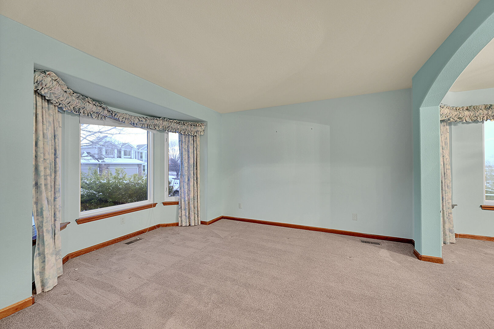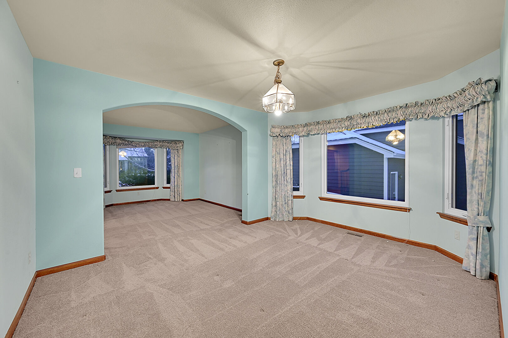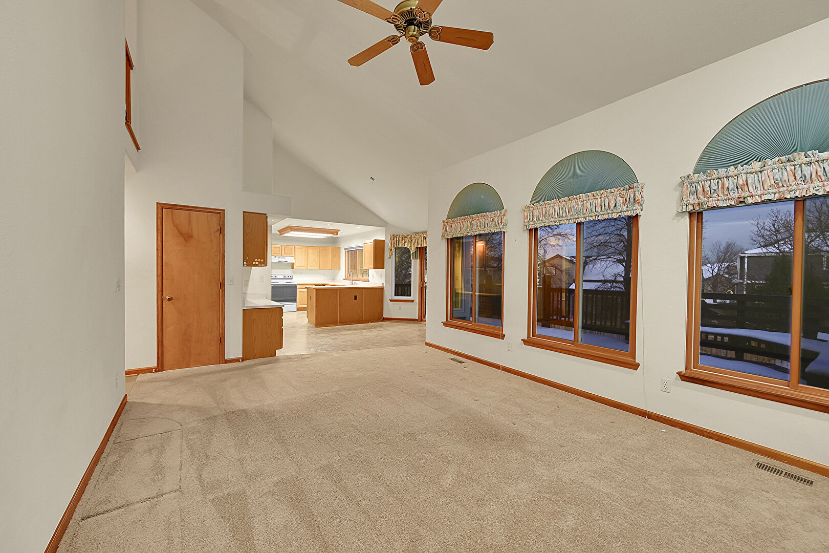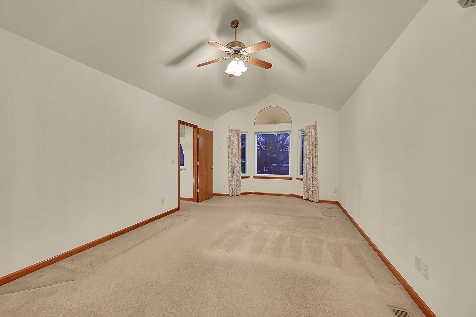 Baseboards Wall, Carpet, Ceiling Fan, Drywall, Vaulted Ceiling, Arched Walkways