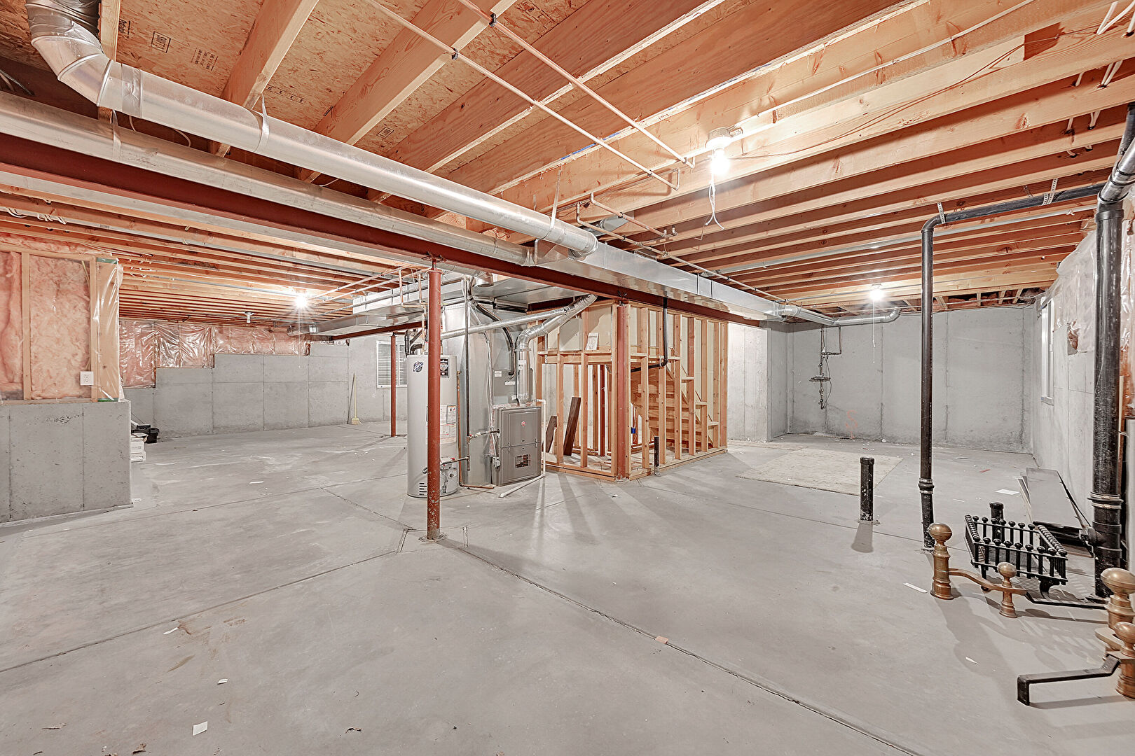 Basement, Concrete Foundation, Furnace, Stairs, Vent, Water Heater, Basement, Furnace