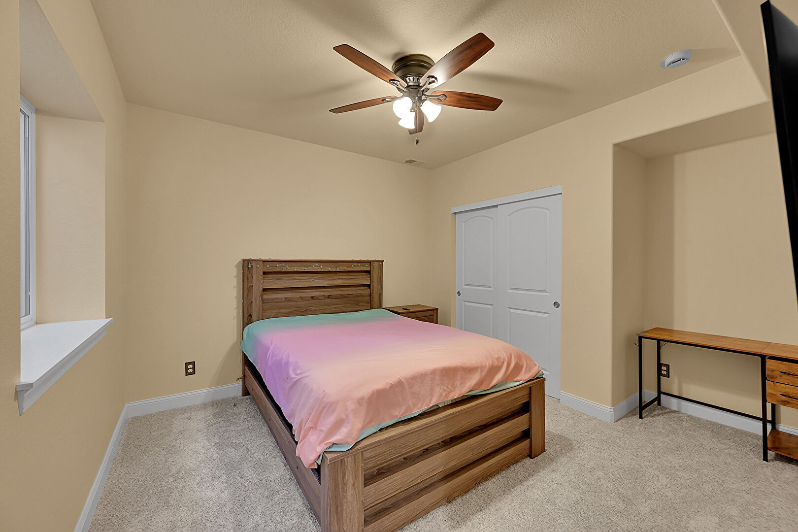 Baseboards Wall, Carpet, Ceiling Fan, Closet, Smoke Carbon Monoxide Detector, Drywall